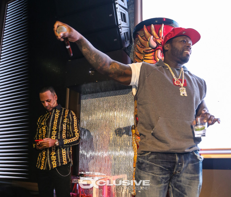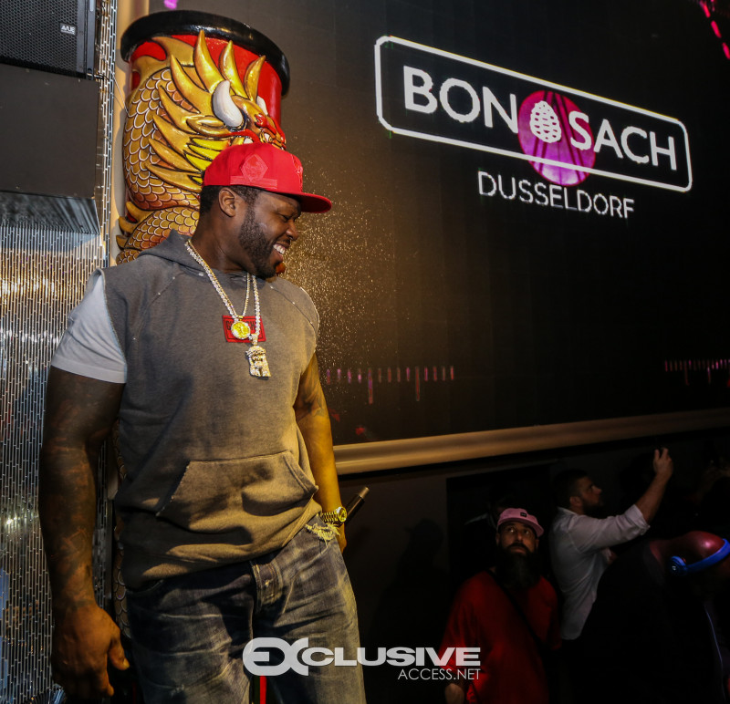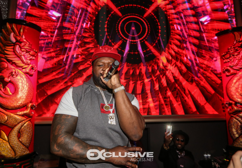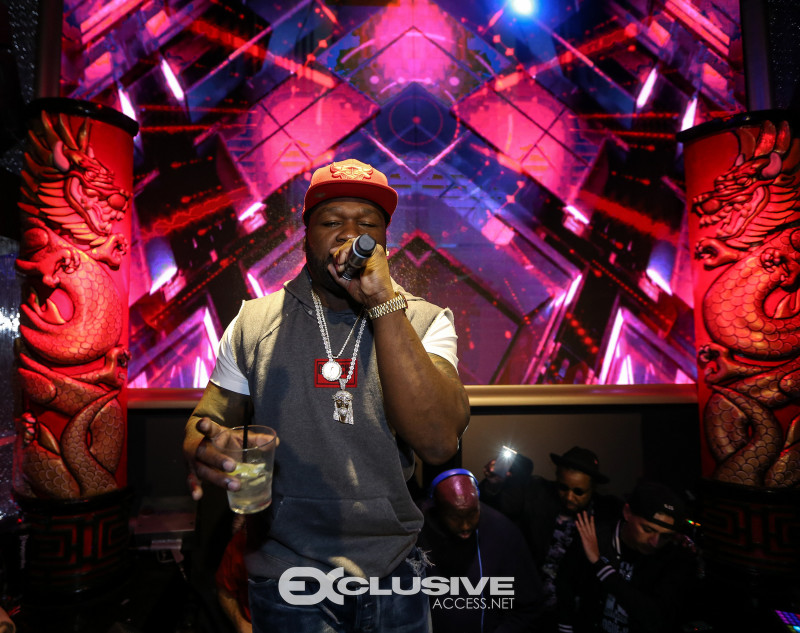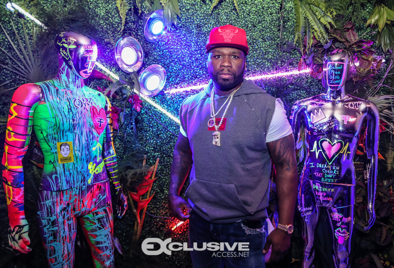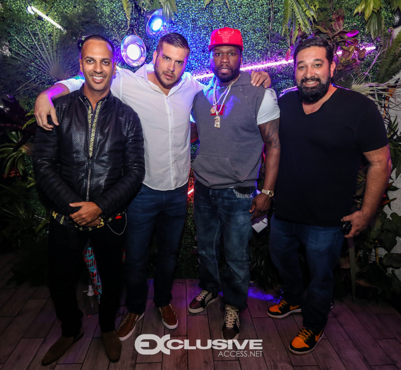 50 Cent rocked fans at h.wood Group’s Blind Dragon take over with Five Four at ORA nightclub during Art Basel on Saturday night with the hottest party of the week. Presented by Absolut Elyx, the rapper and Power star who was due to sing a few songs that evening, ended up performing a 15-song set of his biggest hits from the DJ booth including “Candy Shop,” “Just a Little Bit,” and “21 Questions” for a seemingly endless concert… The art world’s jet set and international VIPs including title boxers Danny Garcia and Jean Pascal looked on from their VIP table where 50 Cent later joined.