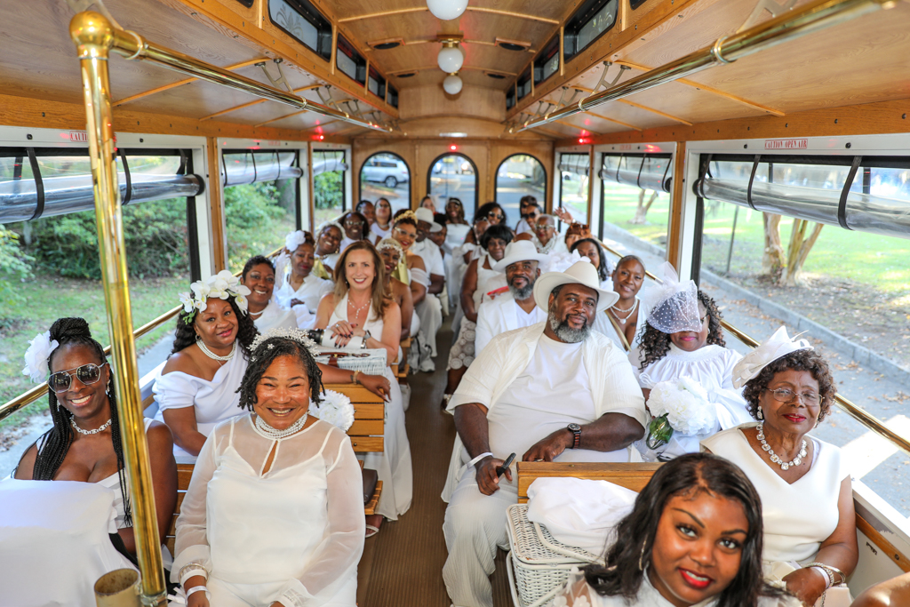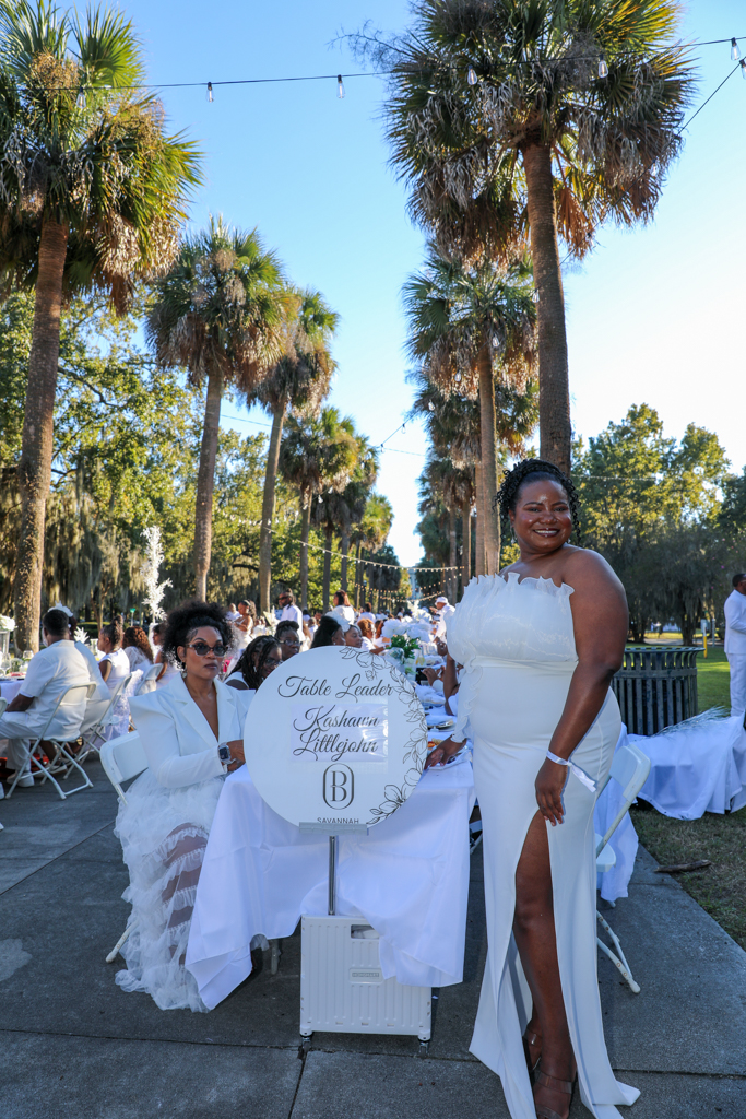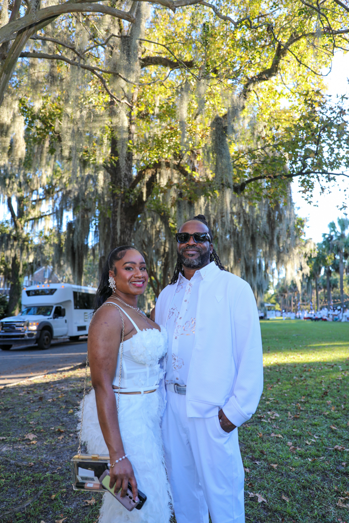 The secret location was revealed to be Tiedeman Park, which transformed into a sea of white linens, glowing lights, and refined elegance. Whether traveling in from cities like Chicago, Virginia, or Atlanta — many staying at The Savannah AC Marriott — or arriving in style via Elite Savannah Travel Trolley’s. Guests who were local or those who came from far and wide were ready to celebrate.