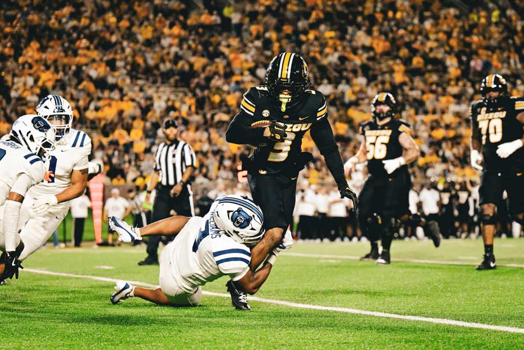 Pribula wasted no time making his mark, firing a 49-yard touchdown strike to Marquis Johnson on just his fifth play as a Tiger, then showcasing his athleticism with a 31-yard rushing score. By halftime, he had led Mizzou on a 14-play, 99-yard touchdown drive starting from inside its own 1-yard line — one of two such drives he engineered in his first outing.