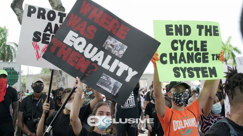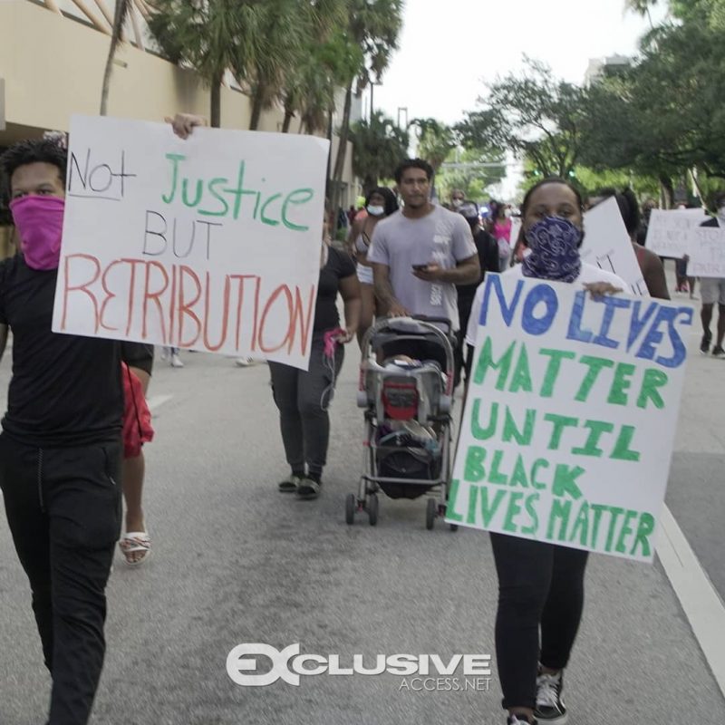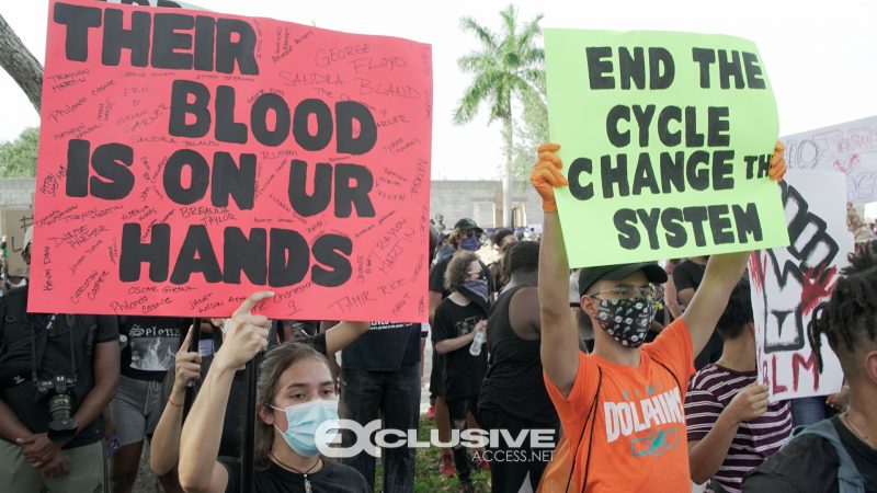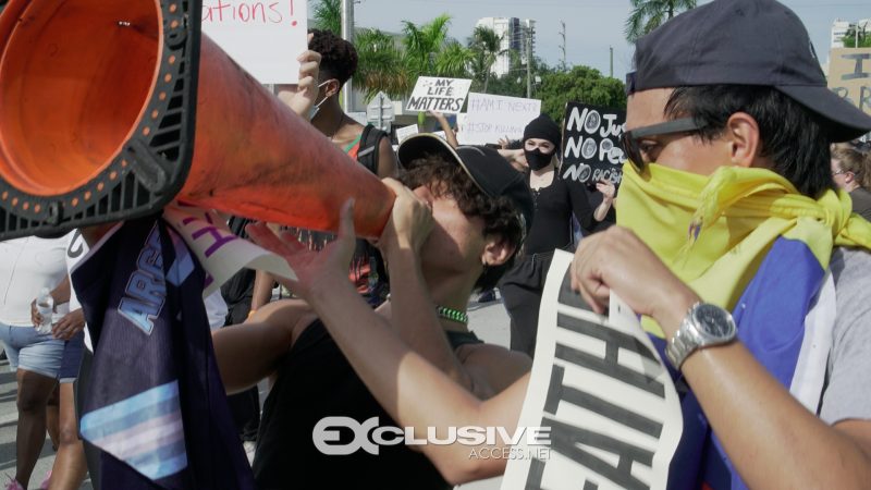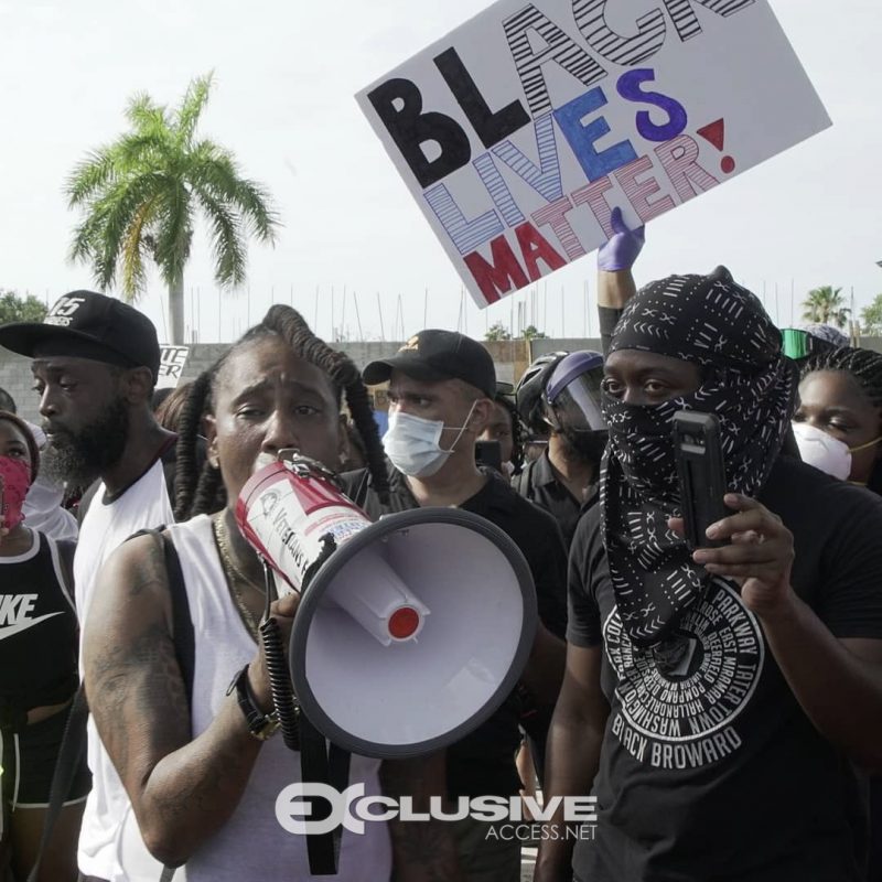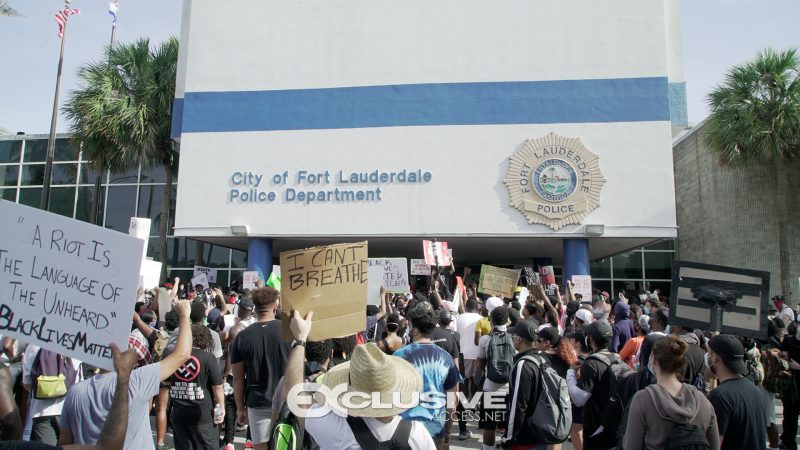 Protesters chant outside of the Fort Lauderdale Police Department headquarters on Broward Boulevard, Sunday, May 31, 2020, during a peaceful march in response to the killing of George Floyd by a Minneapolis police officer and other instances of police brutality.