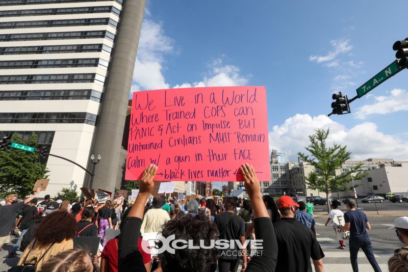 The protests have remained peaceful throughout the city as protesters marched from Bicentennial Mall to Broadway and then to the State Capitol building.