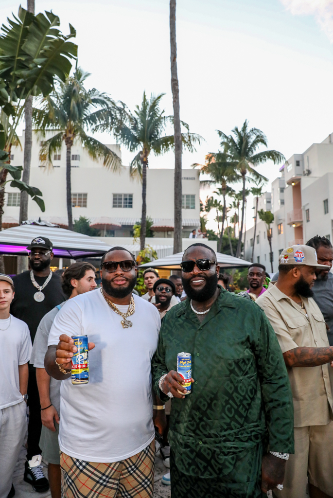 Ross brought his signature boss energy to the event, celebrating the debut of two new infused flavors — Slack Tide (watermelon + mint, 5mg THC/CBD) and High Tide (blueberry + strawberry, 10mg THC/CBD). The drinks reflect the perfect blend of South Beach’s coastal vibe and Ross’s larger-than-life brand.