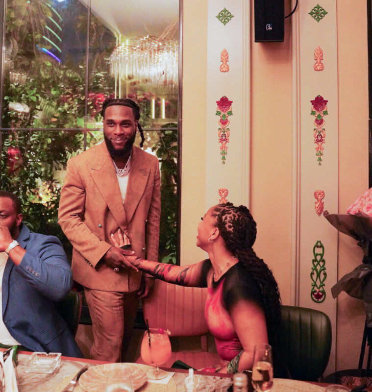 Chloe Bailey and Burna Boy were spotted enjoying dinner together in Lagos, Nigeria. Earlier this week, the two were seen sharing a kiss while dining at a restaurant with friends. Additional footage from the evening captured them holding hands and flaunting their matching wristwatches, fueling dating speculation.