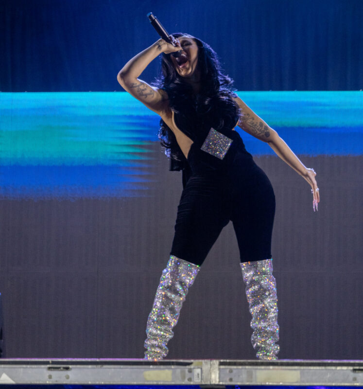Like the true soldier she is despite being under the weather. Cardi B took to the stage with an unforgettable show at Fontainebleau’s legendary oceanfront poolscape! Running through hit after hit. The Multi Grammy Award winning artist had the crowd singing along as she gave her final performance of 2023. After counting down the New Year with the crowd. It was only fitting she Kicked Off 2024 with the latin inspired I like it like that. While proclaiming that 2024 was going to be a year of Health, Money and winning for all! Powered by Varsity LG