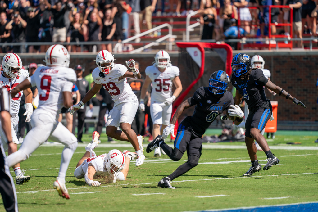 Johnson’s Dual TDs, Medlock’s Pick-6 Power SMU Past Stanford, 34-10