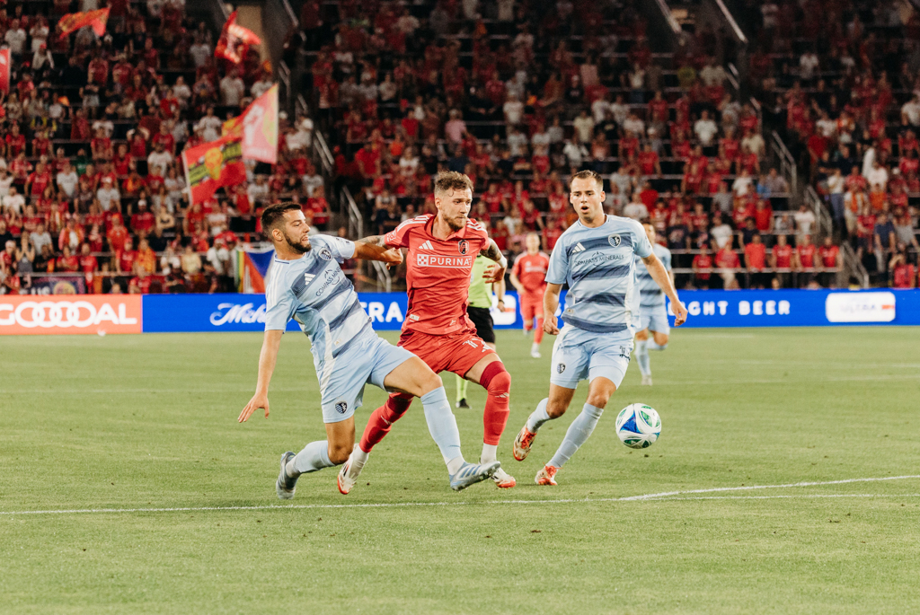 St. Louis CITY SC let a two-goal lead slip away in a high-stakes rivalry match on Wednesday night, settling for a 2-2 draw against Sporting Kansas City at Energizer Park. Despite a dominant first half, CITY SC couldn’t hold off a second-half surge from their cross-state rivals.