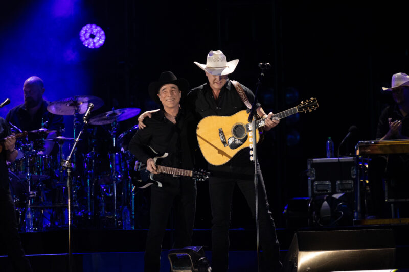 Next up on the platform stage was Puddin, also known as K. Michelle, who performed two tracks from her upcoming country collection. Jelly Roll then reappeared to welcome Jon Pardi, who opened with his No. 1 hit “Your Heart Or Mine.” Pardi kept the crowd moving with “Heartache On The Dance Floor” and “Last Night Lonely.” The highlight of his set was a surprise appearance by country icon Clint Black, with whom he performed “Killin’ Time.” Pardi, dressed in black with a tan cowboy hat, announced it was time for the “Night Shift” before delighting fans with “Dirt On My Boots” and “Head Over Boots,” mingling with fans as he sang.