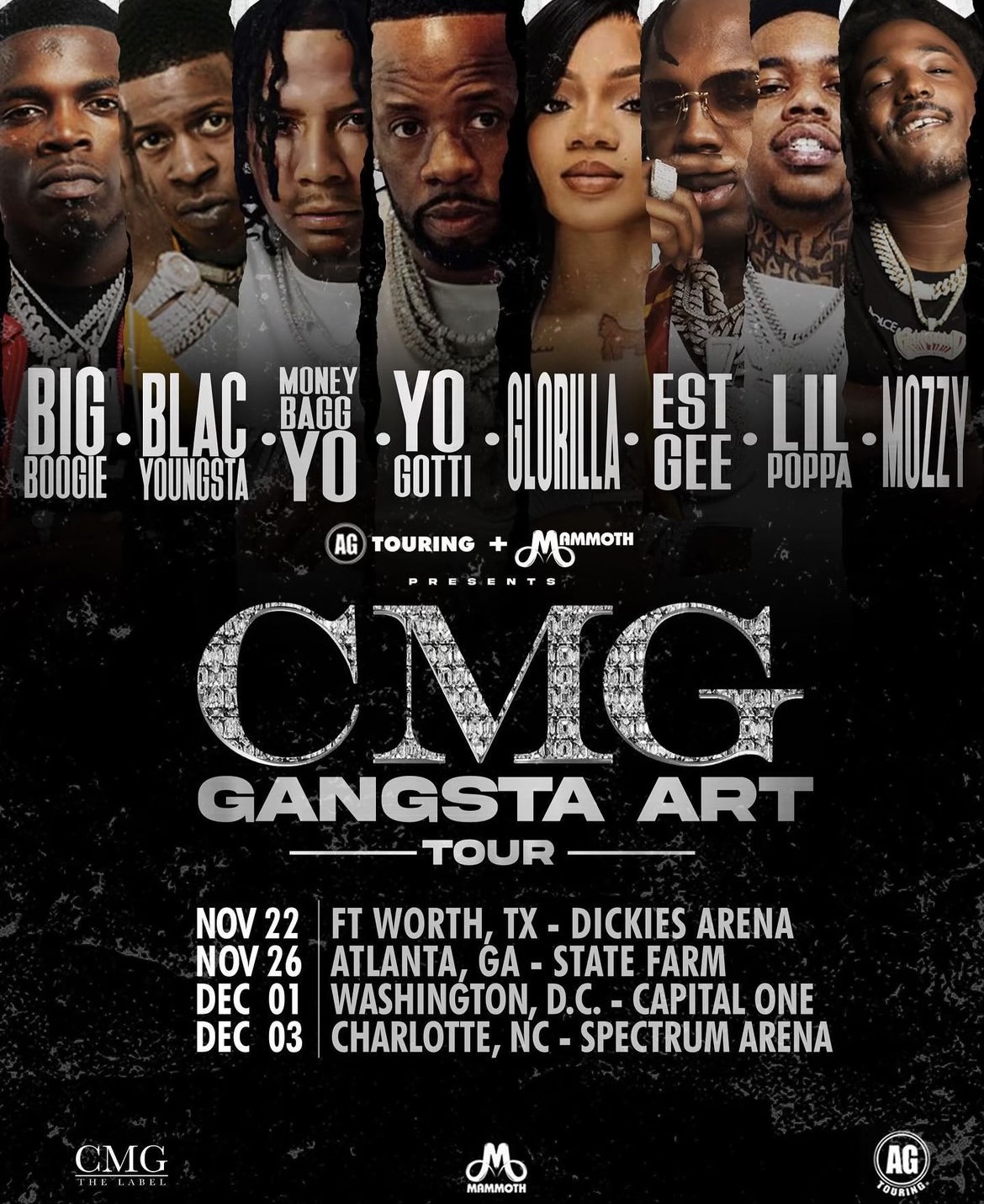 CMG (Collective Music Group) the label just announced their highly anticipated new tour taking place for only four days in four locations. This tour is going to be a whirlwind of talent with the label’s top-performing artists Big Boogie, Black Youngsta, Moneybagg Yo, Yo Gotti, GloRilla, EST Gee, Lil Poppa and Mozzy.