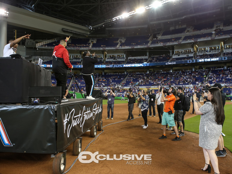 Today to open up the Marlins season. DJ Khaled and Grammy Award winning, songwriter and producer Pooh Bear performed the 2018 Marlins Theme Song #JustGettinStarted.