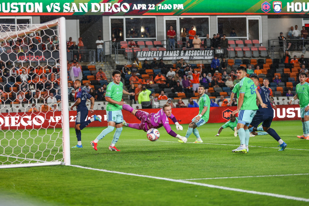Houston threatened early, nearly scoring in the ninth minute when Mateusz Bogusz fired from inside the box, only to see his effort blocked. Goalkeeper Jonathan Bond kept Houston level in the 21st minute with a quick low save to deny Jesus Ferreira.