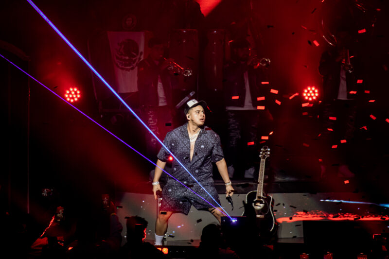 It was a Sold Out show at the Smart Financial Center, with every seat taken the count down starts & the intro to the Otra Peda Tour 2023 plays with JOP and Fuerza Regida having a cameo of them walking into the stage and hyping up the crowd from backstage to the stage, the crowd starts going crazy “JOP-JOP-JOP”; they get on stage and start giving the fans the show or as jop calls it a Peda and not a show.