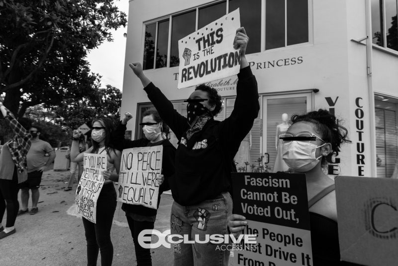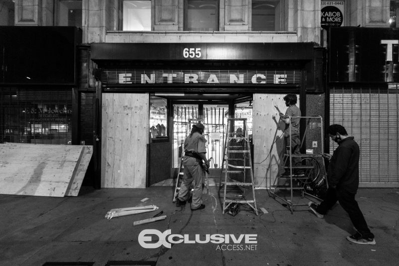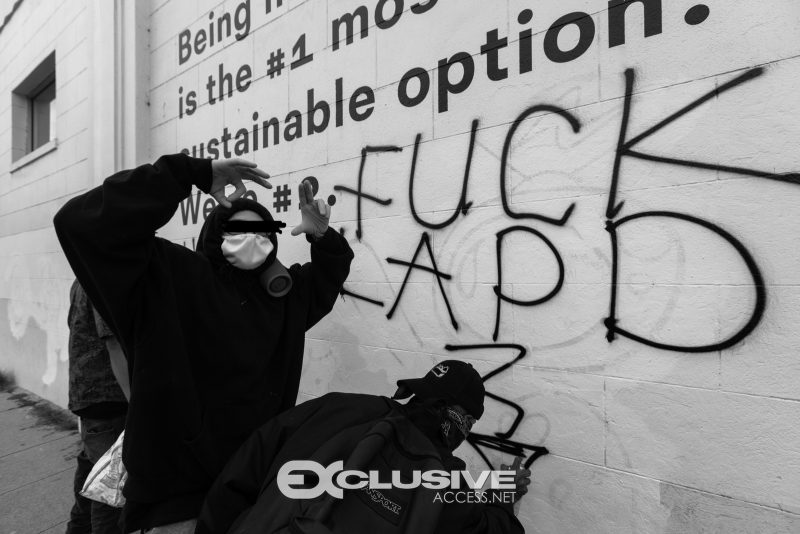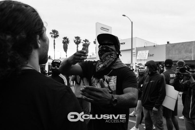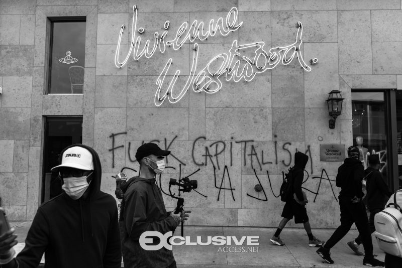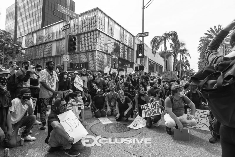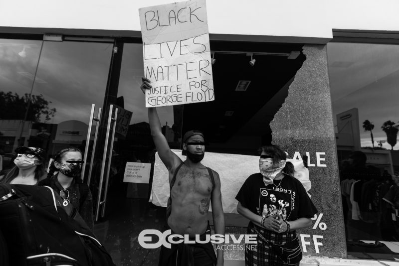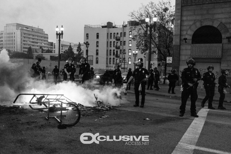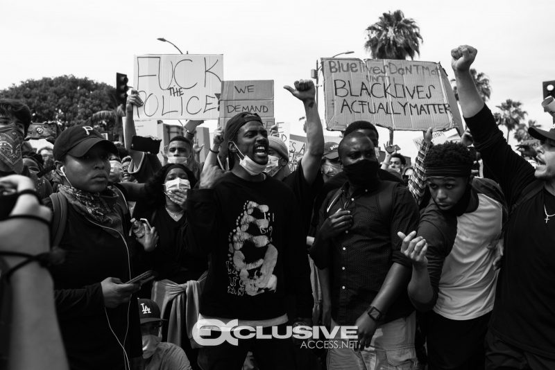 Outrage over the the death of George Floyd, a black man killed after a white Minneapolis police officer pinned him to the ground with his knee, spurred demonstrators to take to the the streets of downtown Los Angeles.