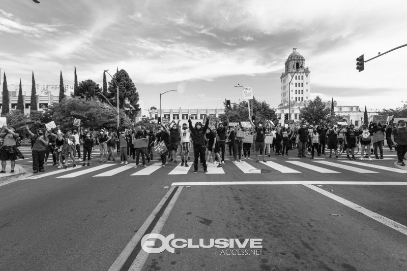 Organized by Black Lives Matter-LA, hundreds of demonstrators briefly blocked the 101 Freeway and marched around the Civic Center.