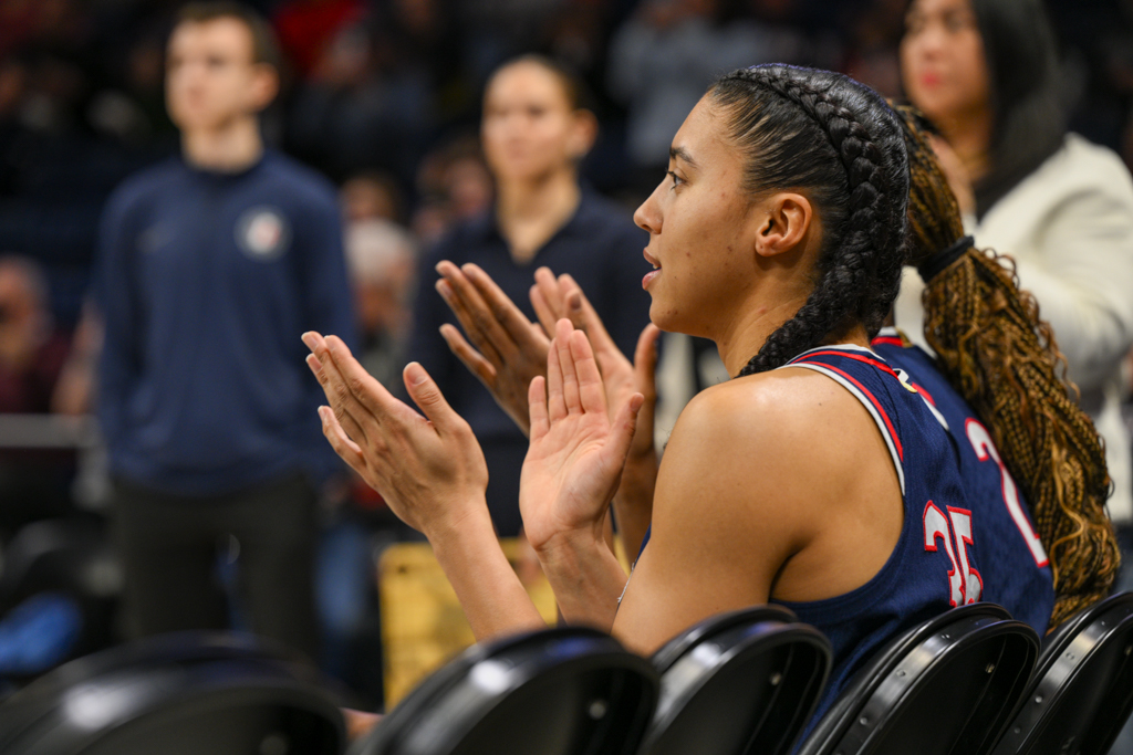 The Huskies again surged to begin the second quarter, stretching the lead to as many as 29 points. Georgetown briefly found momentum behind a jumper from sophomore Summer Davis and a traditional three-point play by graduate student Brianna Scott, but UConn quickly answered. Scott’s second three-point play at the buzzer sent the Hoyas into halftime trailing 51–20.