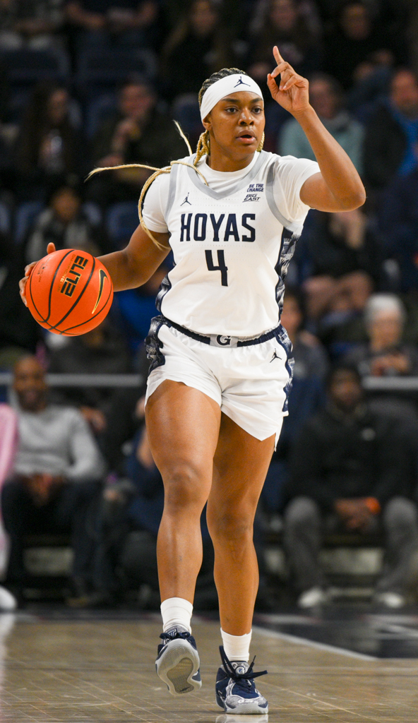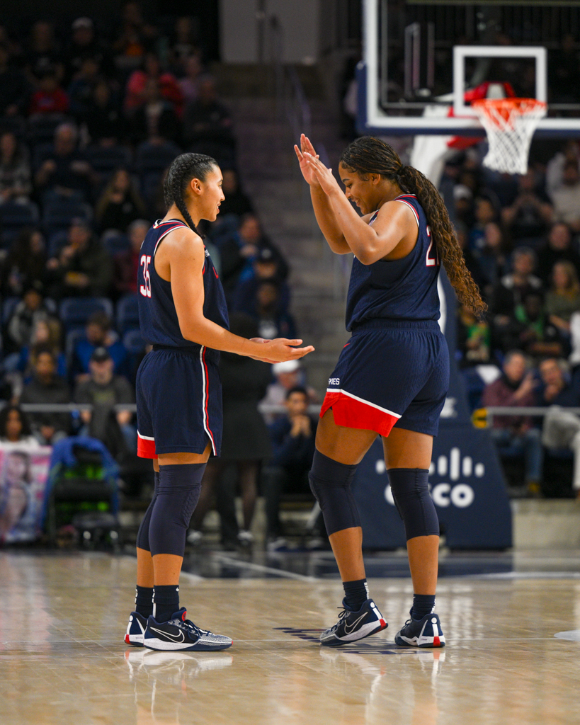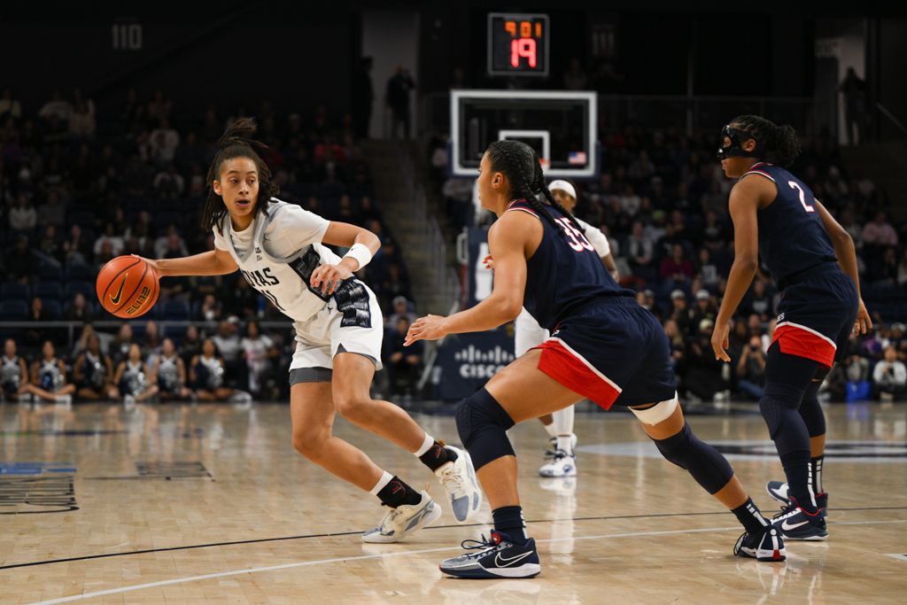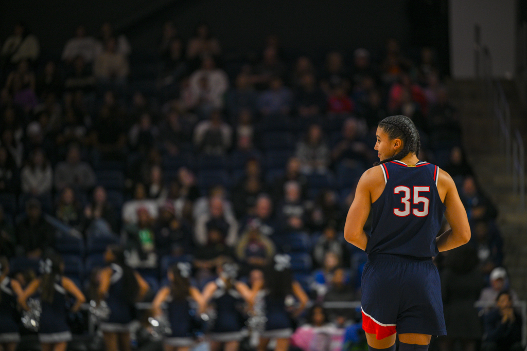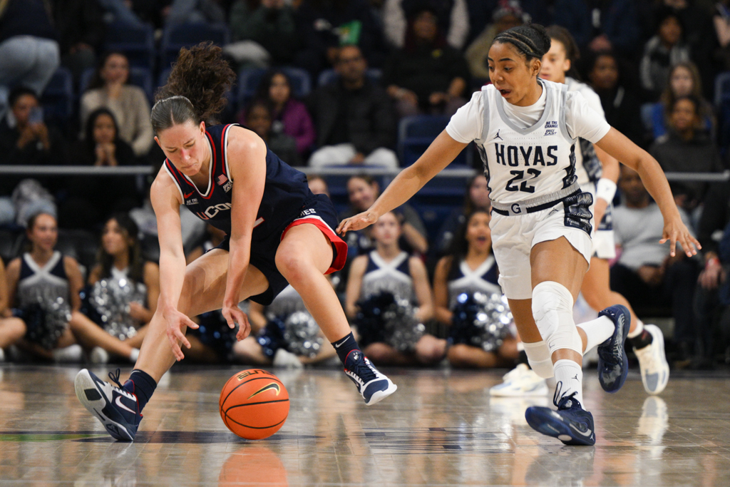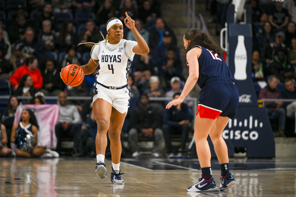 UConn set the tone early, opening the game on an 18–2 run over the first seven minutes. Georgetown responded late in the first quarter, using an 8–0 run sparked by free throws from junior Khia Miller to cut the deficit to 20–10 after one.