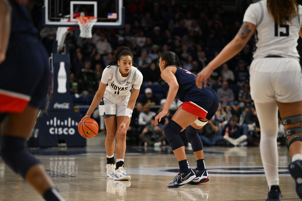 The Georgetown University women’s basketball team fell to No. 1 UConn, 83–42, Thursday night in a BIG EAST Conference matchup at CareFirst Arena. The loss drops the Hoyas to 11–8 overall and 4–6 in league play, while the defending powerhouse Huskies remained unbeaten at 20–0 and 10–0 in conference action.