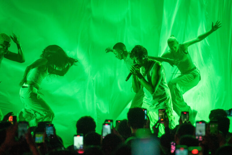 Coming fresh off the release of his critically acclaimed new album, God Said No, Omar Apollo performed to an electric Thursday night at the Mesa Amphitheater in Mesa, Arizona. The stage was adorned with celestial visuals and imaginative lighting, creating an intimate yet engaging ambiance. Omar’s soulful vocals resonated as he played tracks from the new album, alongside imagined versions of fan favorites like “Evergreen” and “Kamikaze.” Opening act Kevin Abstract set the mood with an energetic performance highlighting his new solo tracks such as Blanket as well as some of his verses off of his former boy band Brockhampton. Click here to stream God Said No