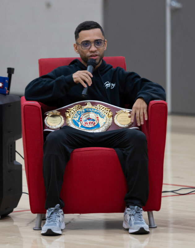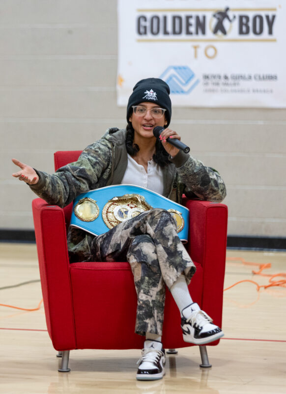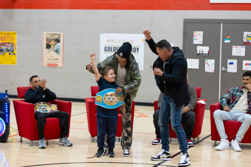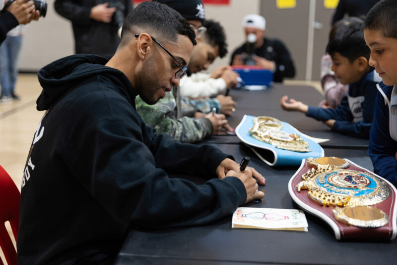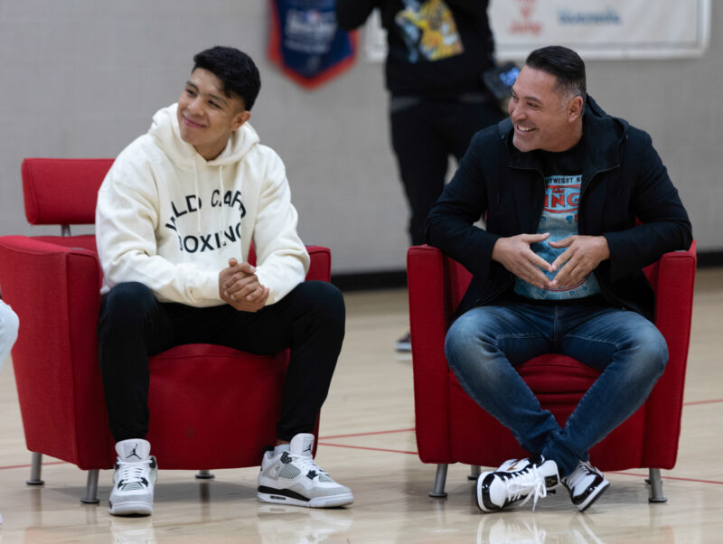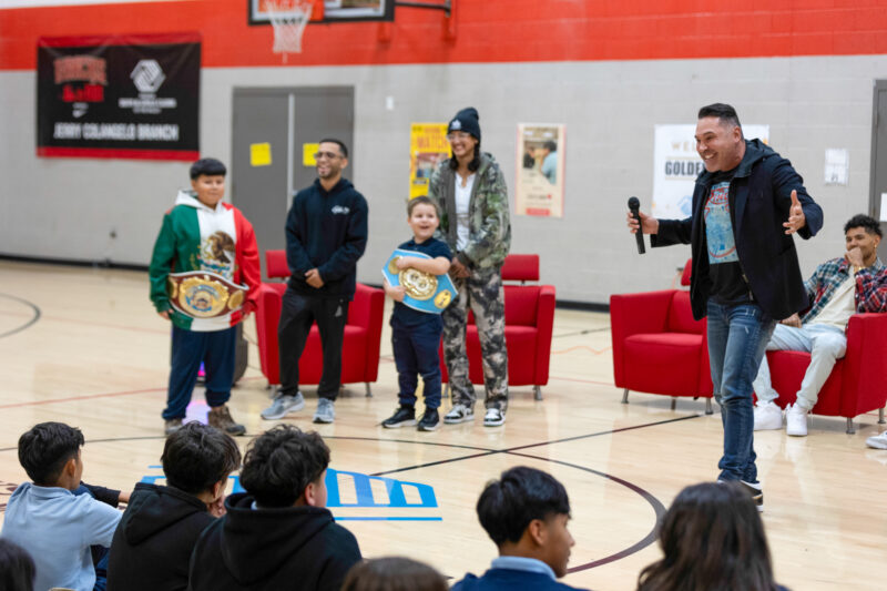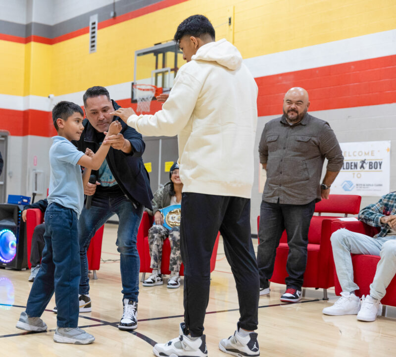 Oscar De La Hoya’s Golden Boy Promotions fighters who will participate in Saturday’s Munguia vs. Ryder boxing event at Footprint Center visited the Boys & Girls Club-Jerry Colangelo Branch. Chairman and CEO Oscar De La Hoya and Golden Boy fighters – including Jaime Munguia, Oscar Collazo, Darius Fulghum, and Gabriela Fundora – met with the Club members, took pictures, and shared their inspirational stories.