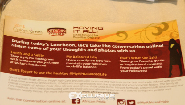 Having it all: Redefining the familiar debate. Featured a powerhouse panel with Charlene Dance, Global Marketing director of Strength of Nature, Joi Gordon CEO of Dress for Success world wide and Audrey Smaltz. Moderated by Helen Shelton, Color Comm Board Member