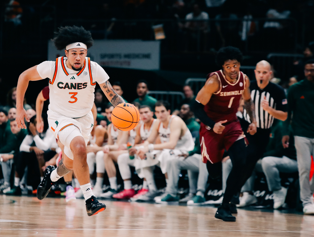 Miami (15–4, 4–2 ACC) suffered its second consecutive loss for the first time this season, despite controlling much of the first half. The Hurricanes built multiple six-point leads early but were unable to extend the margin further. Florida State (8–11, 1–5 ACC) closed the half with momentum, taking a 38–37 lead on a buzzer-beating three-pointer from Kobe Magee.
