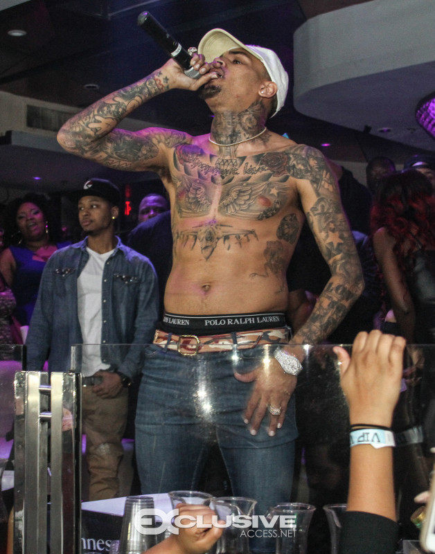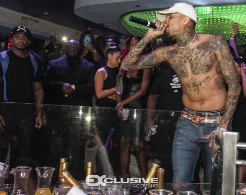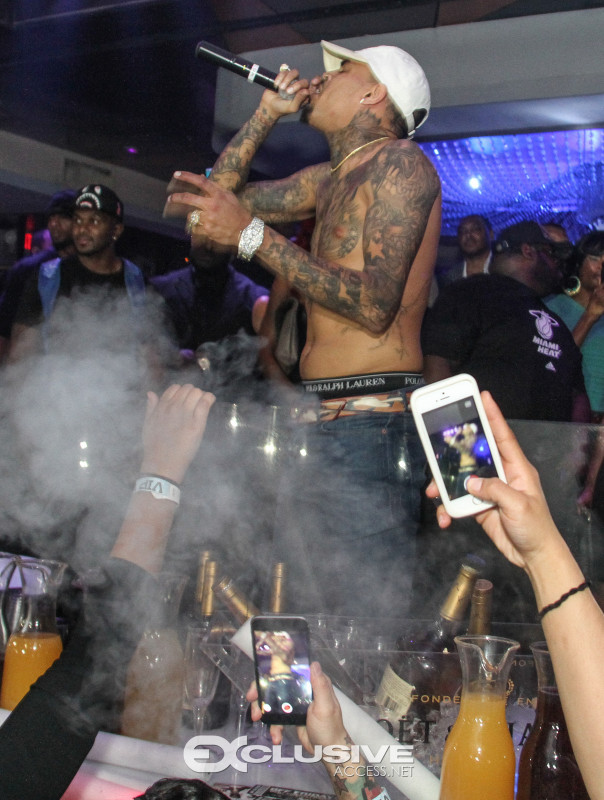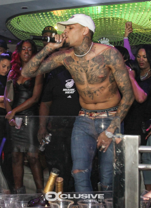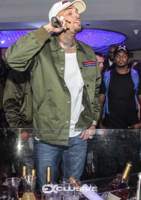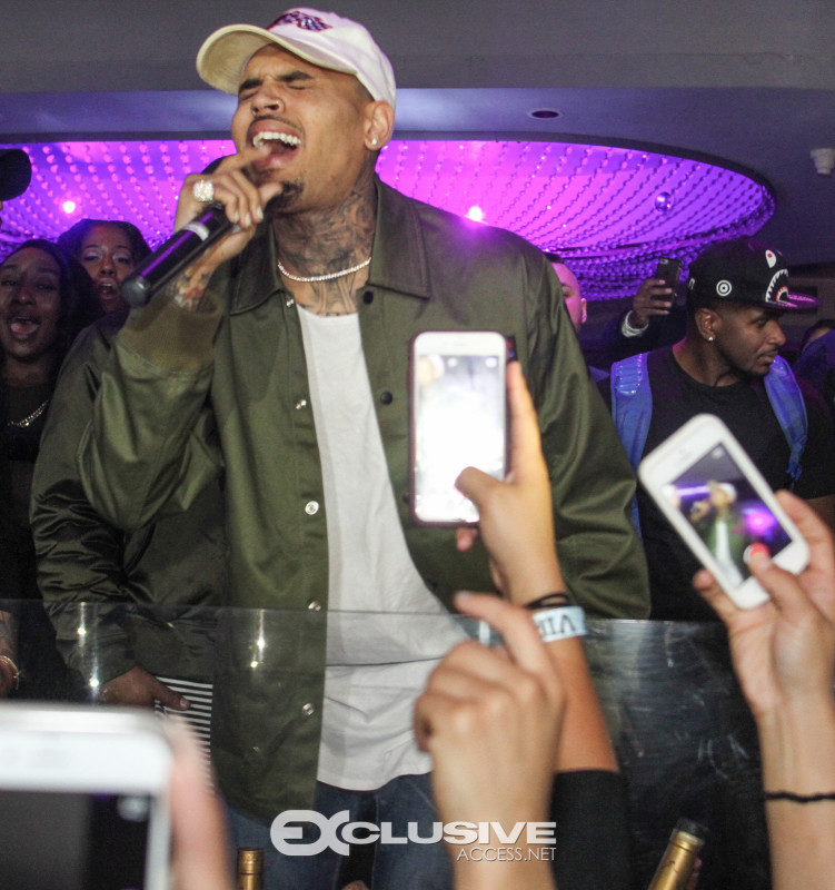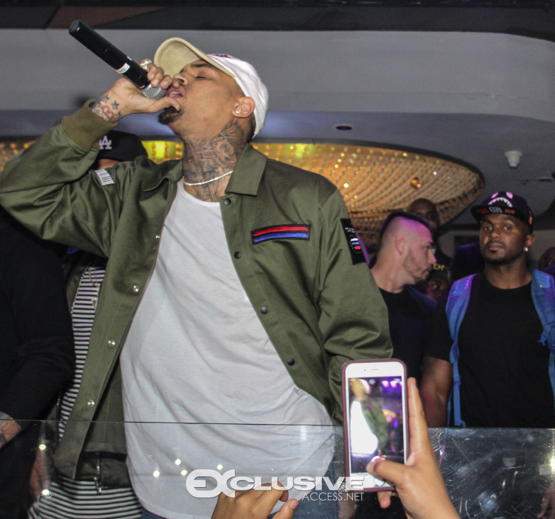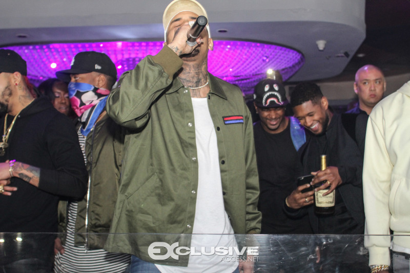 Last night Chris Brown hosted Cafe Iguana presented by Hennessy V.S. Upon his arrival with an entourage of friends and artist, FloRida, Chris was immediately greeted with a Hennessy VS bottle parade. 30 minutes later Usher joined Chris in the nights festivities and the duo performed their popular song “New Flame” followed by a mini dance off. The night concluded with Chris performing several songs off his new album, Royalty.