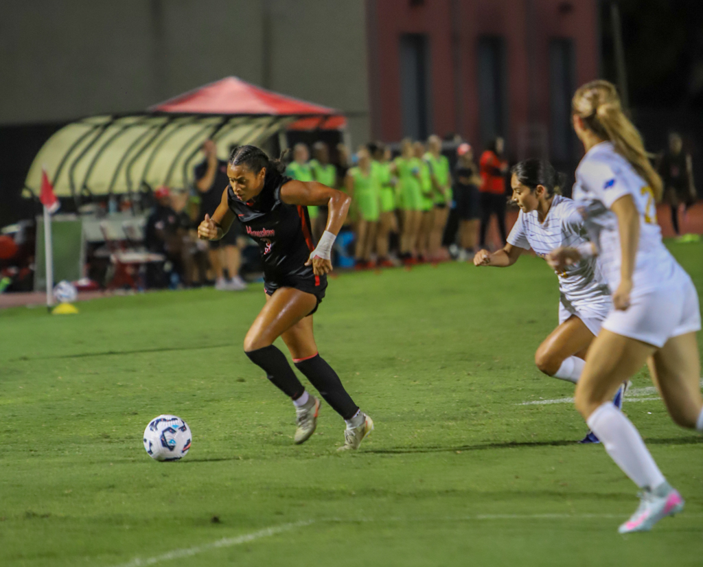 Houston’s pressure continued, and in the 35th minute junior forward Jocelyn Chinea wrapped a shot around a defender and into the back of the net, giving the Cougars a comfortable 3-0 lead heading into halftime.