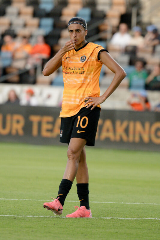 Houston’s first threat of the evening came from a corner kick in the 13th minute. Andressa played a dangerous ball into the box, but Ordoñez’s header was off target.