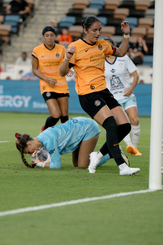 Houston’s first opportunity of the second half came in the 60th minute after Ordoñez won a foul outside the box. Andressa took the ensuing free kick and nearly found the top corner of the near post. She forced the Pachuca backline to clear the ball, leading to the second goal of the match from the resulting corner kick.