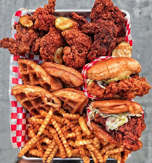As if all the above wasn’t enough the food was GREAT!!! Ordered 1 of everything except the sides LOL when it came to the side I had the Shake Fries which I loved and the collard greens. Wasn’t used to the greens being cooked with tomato’s so that kinda threw me a little. But the chicken was fresh and hot! Half my order was the Country Chicken which has no heat. My other half was Mild and that mild still had a little kick! Which was cool because at Howlin Ray’s The Peach tea and Lemonade refills are free! All in All it was wonderful experience. One I don’t suggest you take unless you have a good 2 hours to enjoy it! All photos were pulled form Howlin Ray’s Instagram. Please check there for corresponding photo credits.