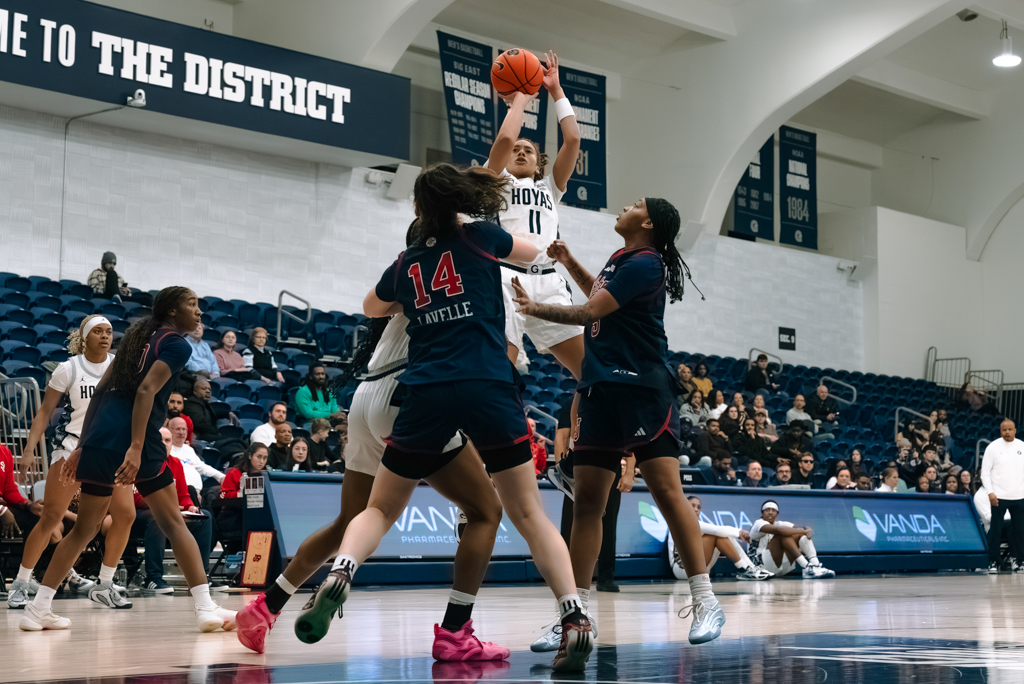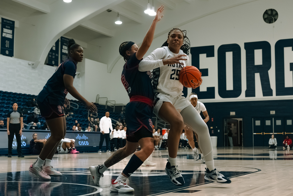 Coming off a tough road loss at DePaul, Georgetown responded with intensity from the opening tip. Sophomore Destiny Agubata and graduate student Chetanna Nweke jump-started the offense, combining for the Hoyas’ first nine points. Stifling defense and an 11-0 first-quarter run—sparked by eight points from graduate student Laila Jewett—helped GU build a 20-8 lead after one.