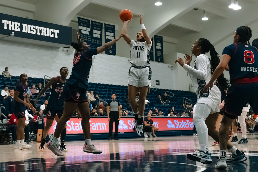 Agubata led the Hoyas for the second straight game with 15 points, four assists, and a steal, while Jewett added 13 points. Junior Brianna Byars contributed eight points, seven rebounds, and an assist, anchoring Georgetown’s effort on the boards. The Blue & Gray outrebounded the Red Storm 40-26, including a decisive 15-6 edge on the offensive glass, and forced 18 turnovers.