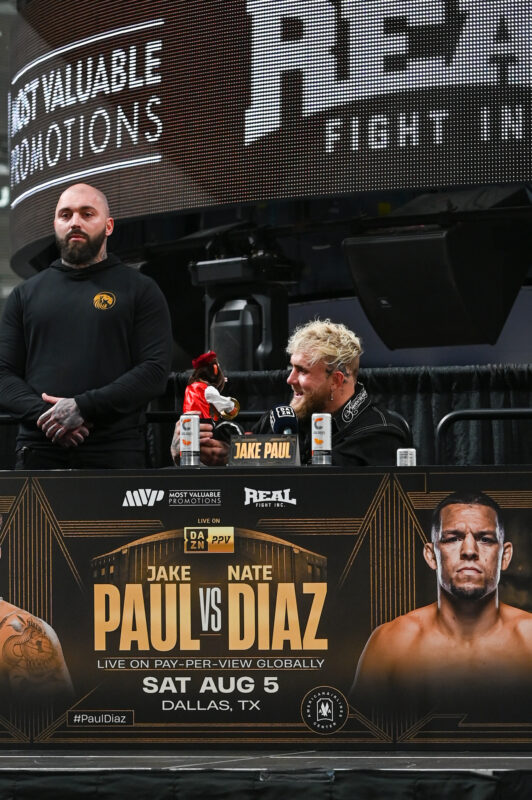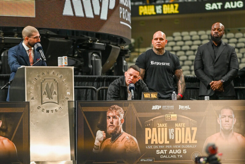 The two rivals Jake Paul and Nate Diaz come face to face at the American Airlines Arena in Dallas, Texas for the first press conference of the boxing match. Things got hostile shortly into the press conference when Paul started taunting Diaz with a plush monkey. The two are fully confident & ready to collide on August 5th. This will be Paul’s eighth pro boxing bout and Diaz’s pro boxing debut.