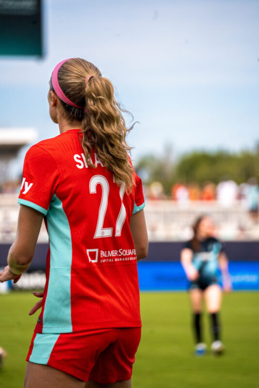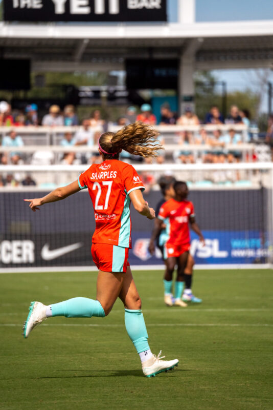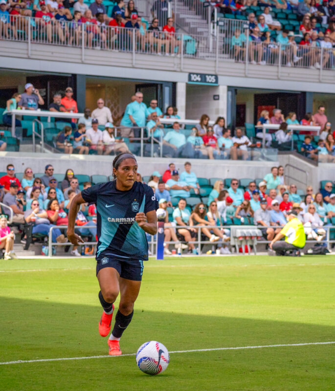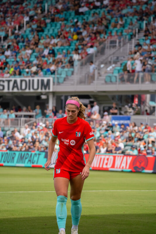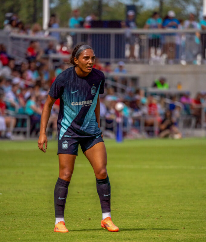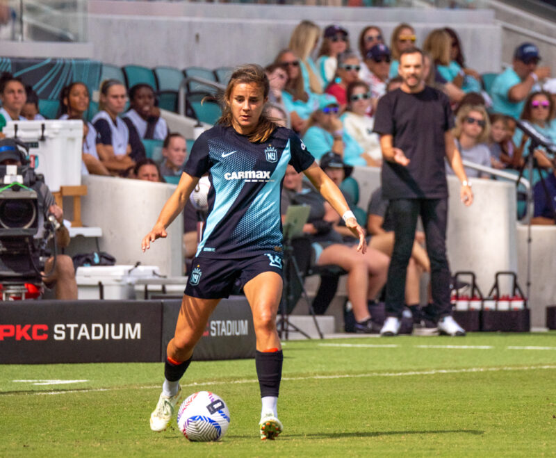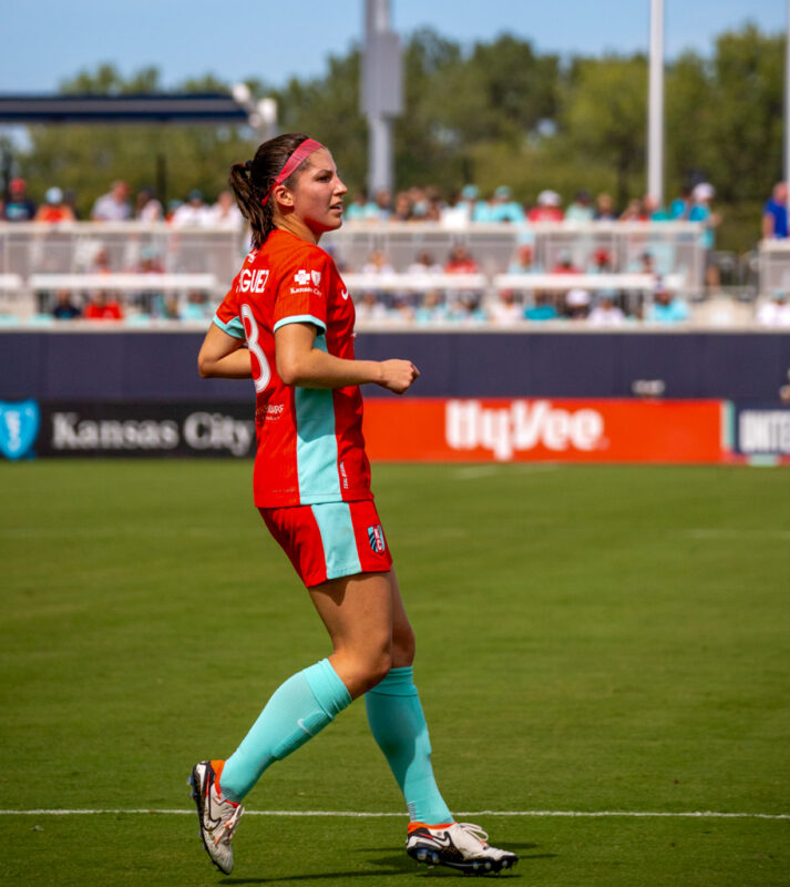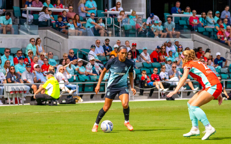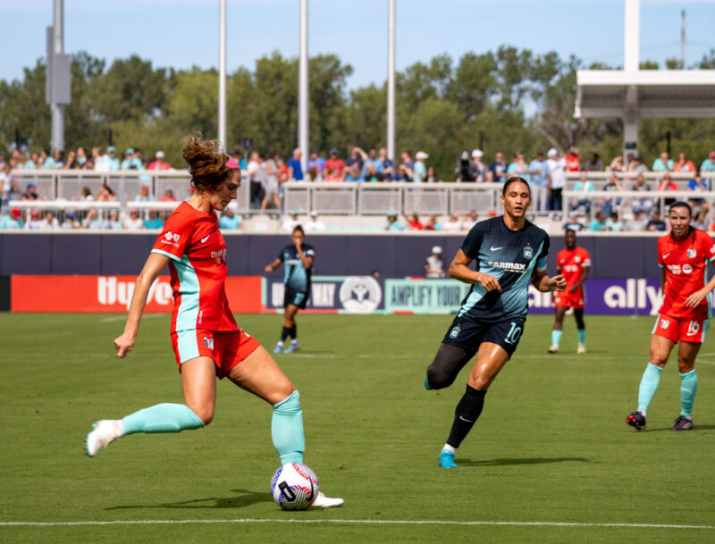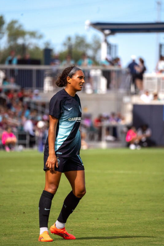 Both teams created early chances, with Kansas City forward Temwa Chawinga going 1-on-1 against defender Jess Carter in the fourth minute. Carter slowed Chawinga until teammate Tierna Davidson blocked the shot. Just two minutes later, a deflected shot fell to Gotham FC midfielder Rose Lavelle inside the box, but her volley was saved by the goalkeeper.