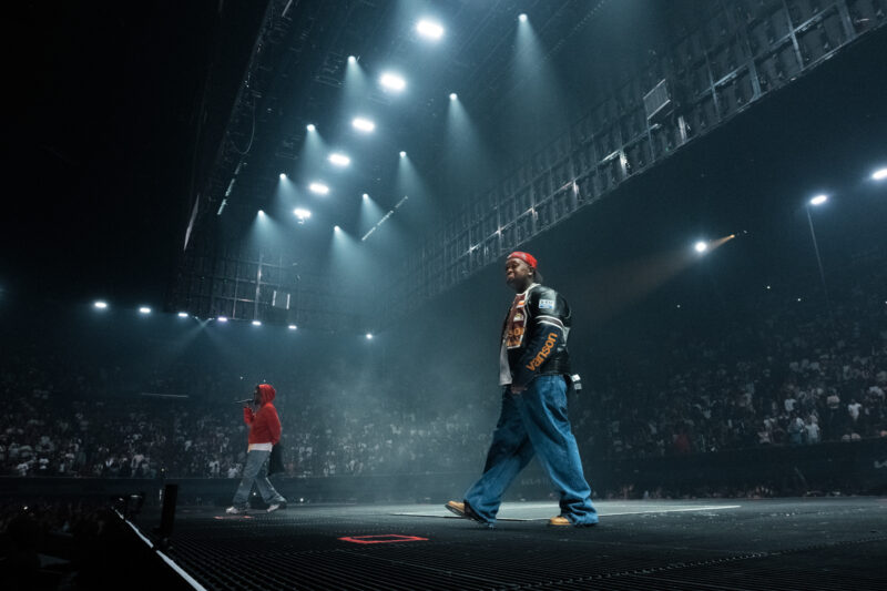 Lamar’s five performances of “Not Like Us” underscored his lingering grudge against Drake. He sometimes shortened the verses, allowing the crowd to sing the lyrics, and interacted with DeRozan and Westbrook onstage. The night culminated in a massive photo with everyone who joined him on stage. One X user described the event as “Kendrick’s own Hatechella,” referencing Mary J. Blige’s song “Family Affair.”