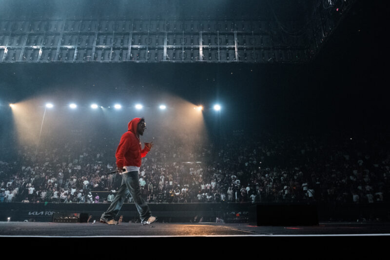 The show’s focus on the feud was clear from the start. The title “The Pop Out” came from a line in “Not Like Us,” and merchandise at the show referenced the beef. Lamar opened with “Euphoria,” a nearly seven-minute diss track against Drake, and also performed other anti-Drake tracks like “6:16 in LA” and “Like That.”