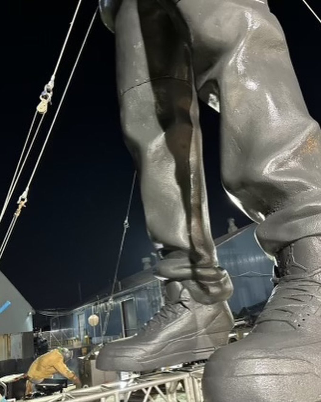 The statues of Cudder, standing at an impressive 33 feet tall, featured red-purple lights emanating from his eyes and a small spotlight projecting from his mouth. The Paris installation played tracks from INSANO, which was released on Friday, January 12. Meanwhile, the Los Angeles sculpture sailed along the Long Beach shoreline, Redondo Beach, Marina Del Rey, Santa Monica, and Malibu. It also “parked” at Alamitos Bay, Redondo Pier, and Malibu Pier during times when it wasn’t sailing.