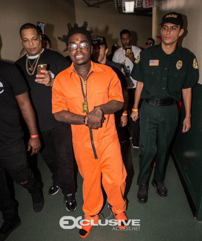 Kodak’s first show out took place last night at The Watsco Center at The University of Miami. Fans from what appeared to be as young as middle schools kids to grown ups gathered at the sold out arena to welcome Kodak home. Trading in his Broward County browns for a Orange Robin Jeans (prison like) Jump suit and some matching orange Versace flip flops Kodak hit the stage.