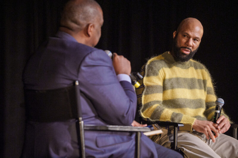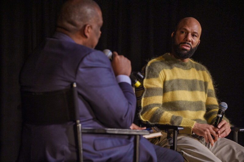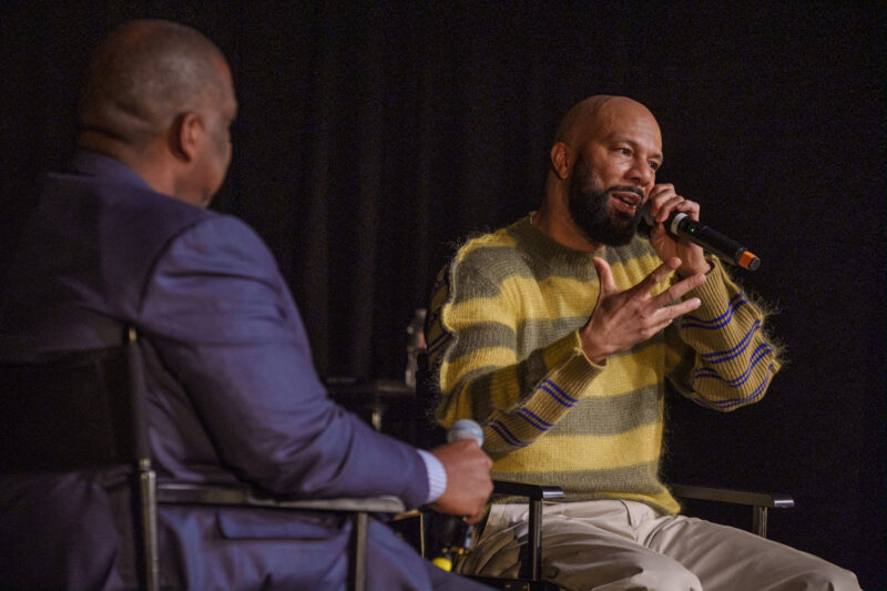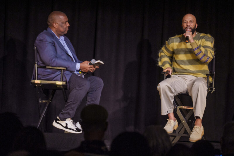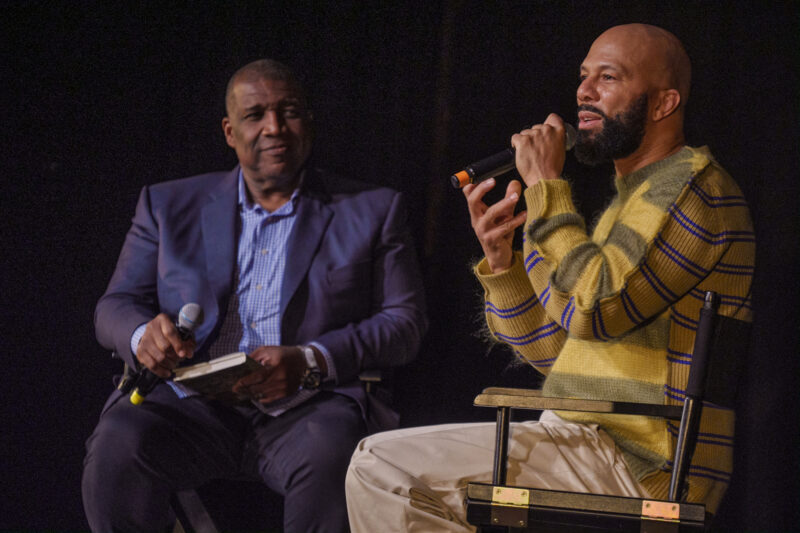 Curt Menefee, sportscaster who hosts the Fox Network’s NFL pregame show Fox NFL Sunday interviewed award-winning rapper, actor and activist, Common. The interview was held at Newark Symphony Hall during a meet