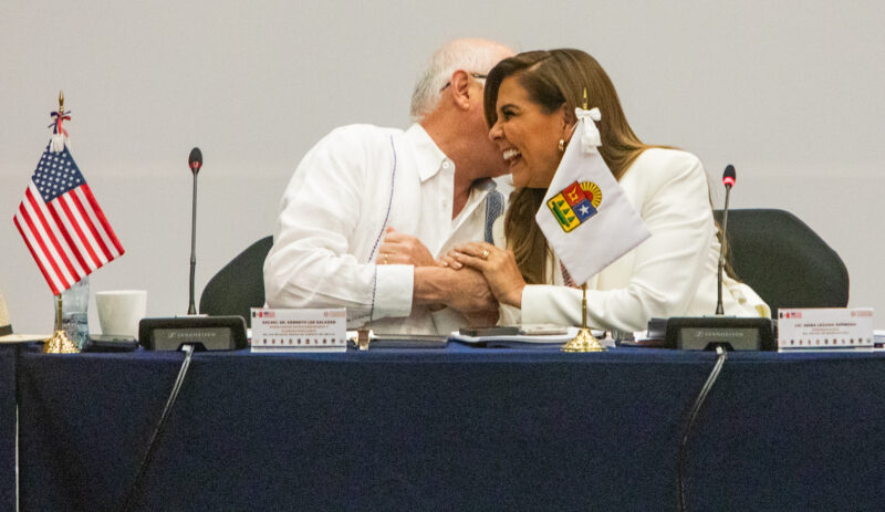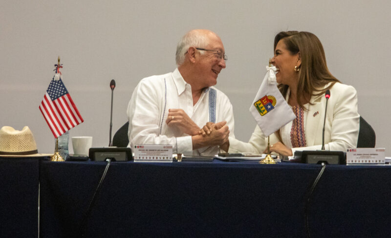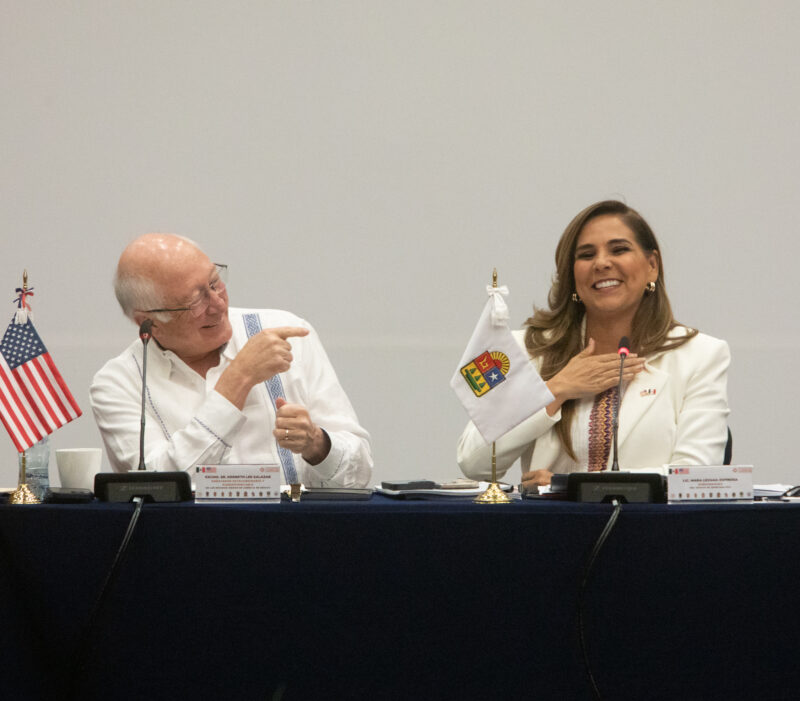 Mara Lezama Espinosa, the coordinator of the South-Southeast Commission of the National Conference of Governors (CONAGO), inaugurated the eighth meeting with the United States Embassy in Cancun, accompanied by the U.S. Ambassador to Mexico, Ken Salazar.