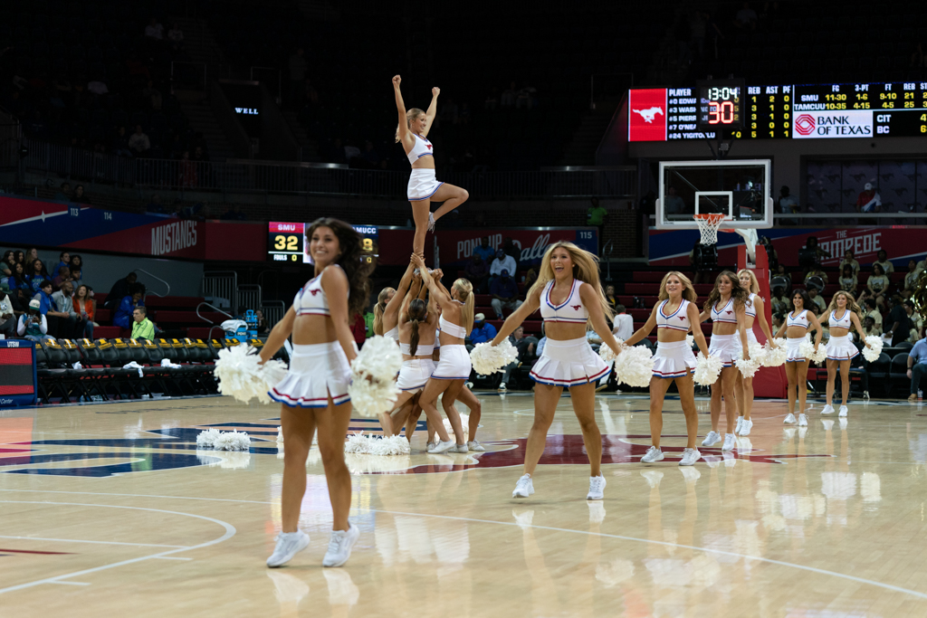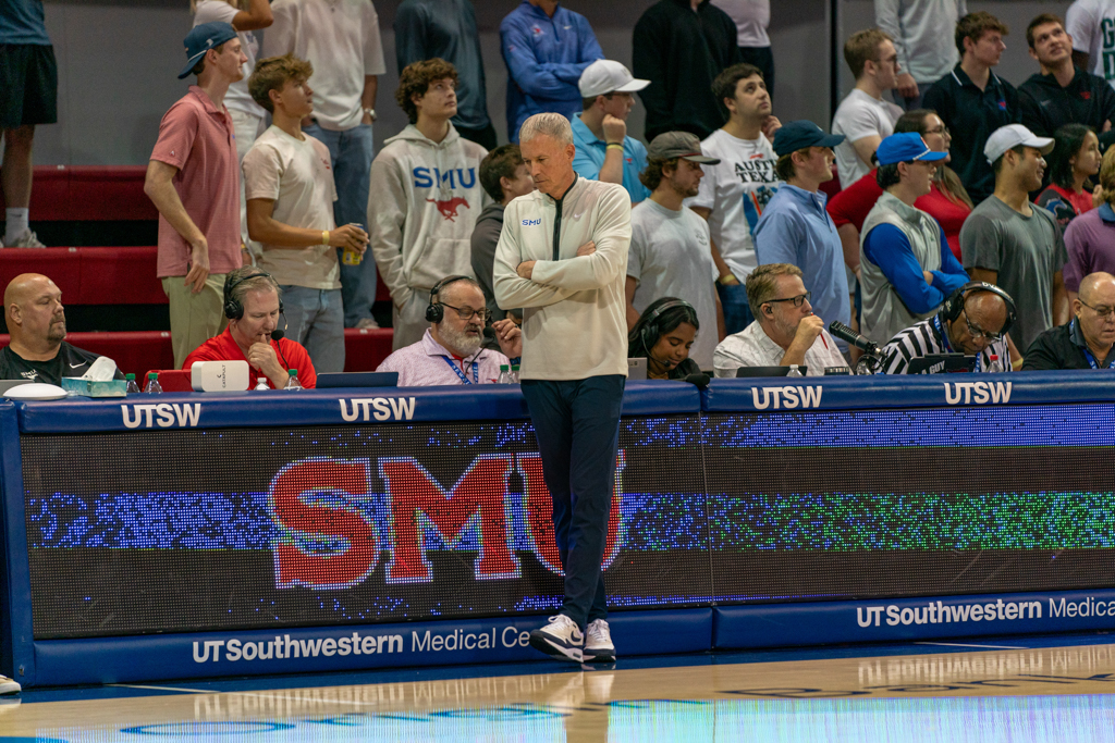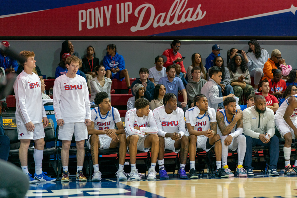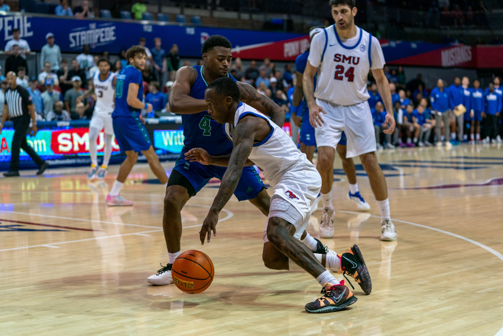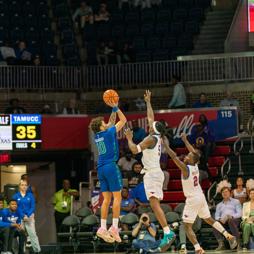 After senior forward Corey Washington scored the first basket of the night, the Mustangs struggled to connect, surrendering the lead for most of the first half. SMU didn’t pull back ahead until the final four minutes before the break. The defense, however, locked in—holding the Islanders scoreless for seven straight minutes until a late 3-pointer from junior guard Daniel Michelini-Jackson cut into the gap just before halftime.