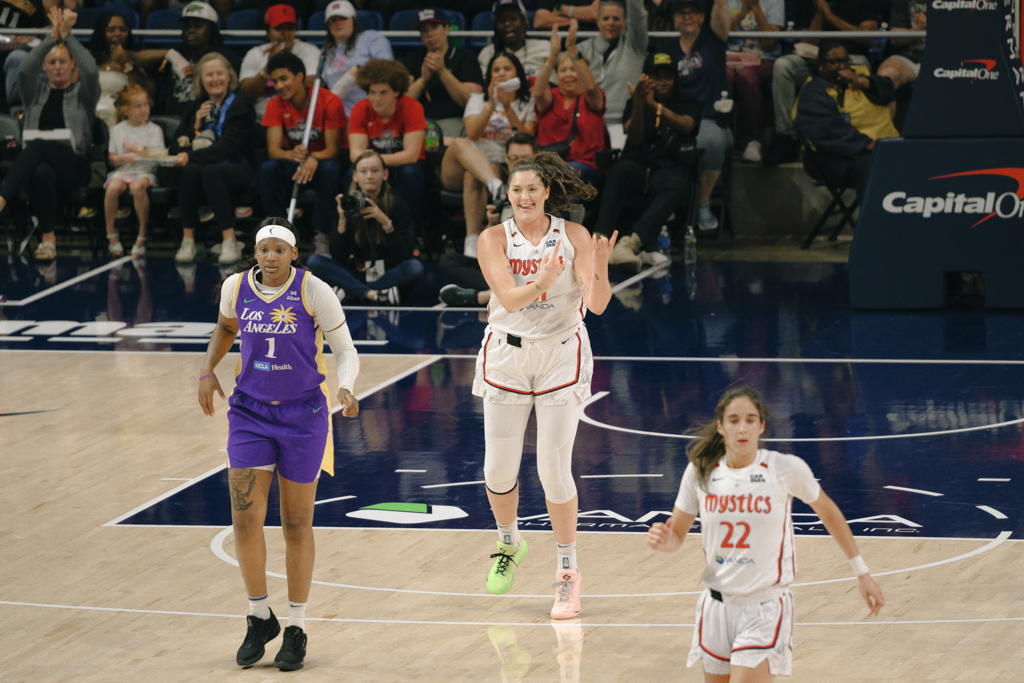 The Washington Mystics fought hard but came up short in a 93-86 loss to the Los Angeles Sparks on Tuesday night, despite strong performances from Brittney Sykes (18 points) and Shakira Austin (17 points). After opening the game with a dominant 18-3 run, the Mystics were held to just nine points in the second quarter but kept it close throughout, tying the game at 67-all heading into the fourth thanks to a buzzer-beating layup by Sykes.