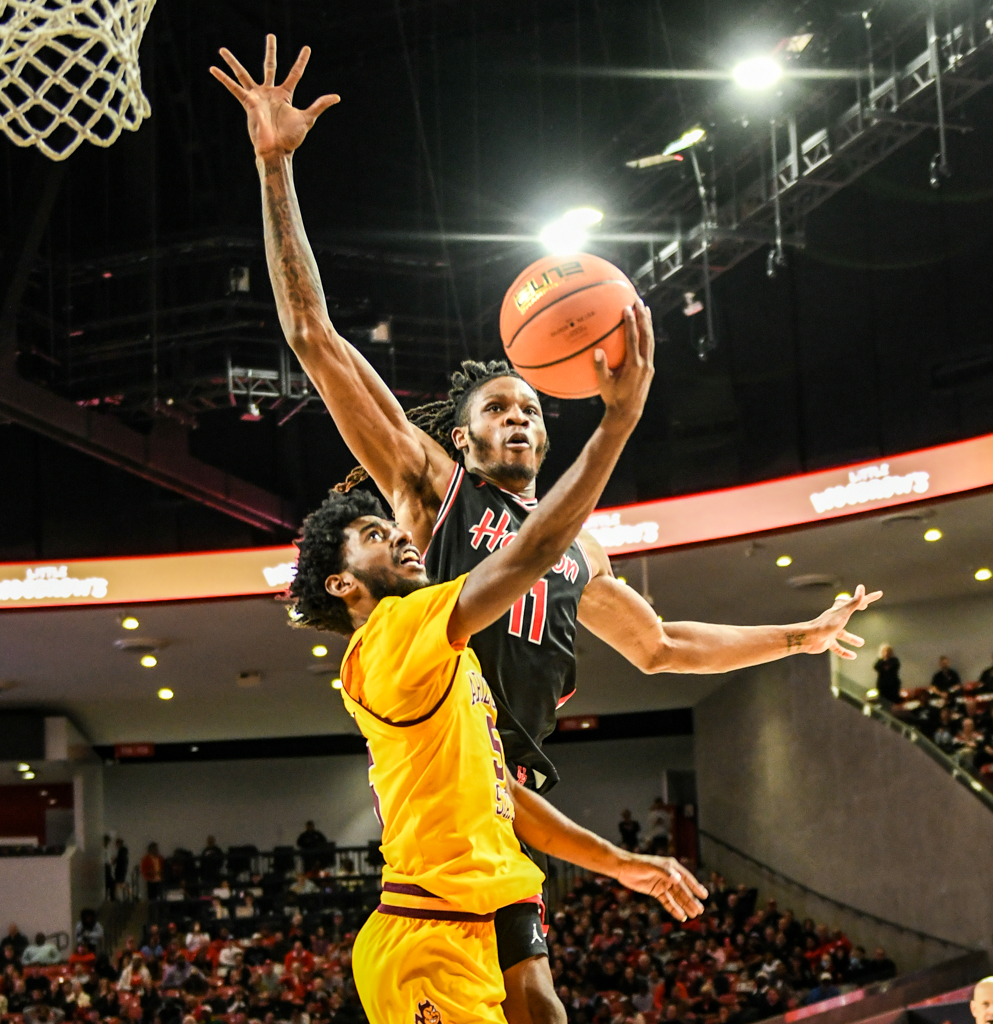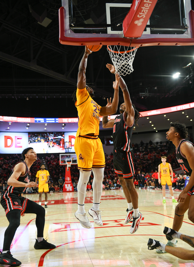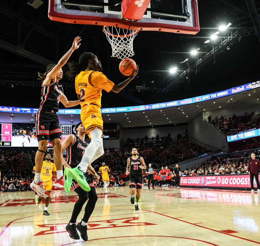 Houston overwhelmed Arizona State with a blistering start, opening the game on a 30–5 run while shooting 12-of-15 from the field. The Cougars finished the night shooting 56 percent overall and knocked down 12 three-pointers, posting their highest point total of the season.