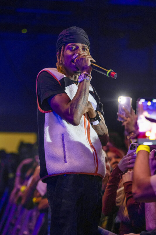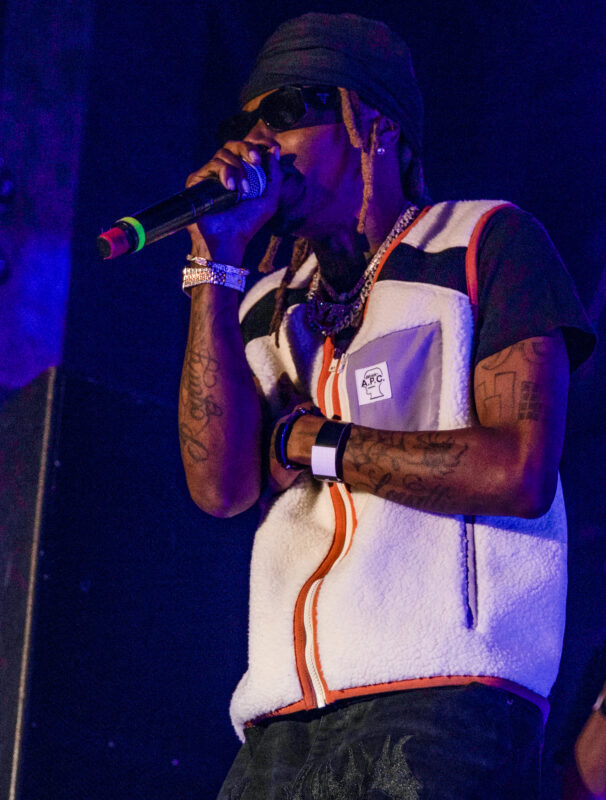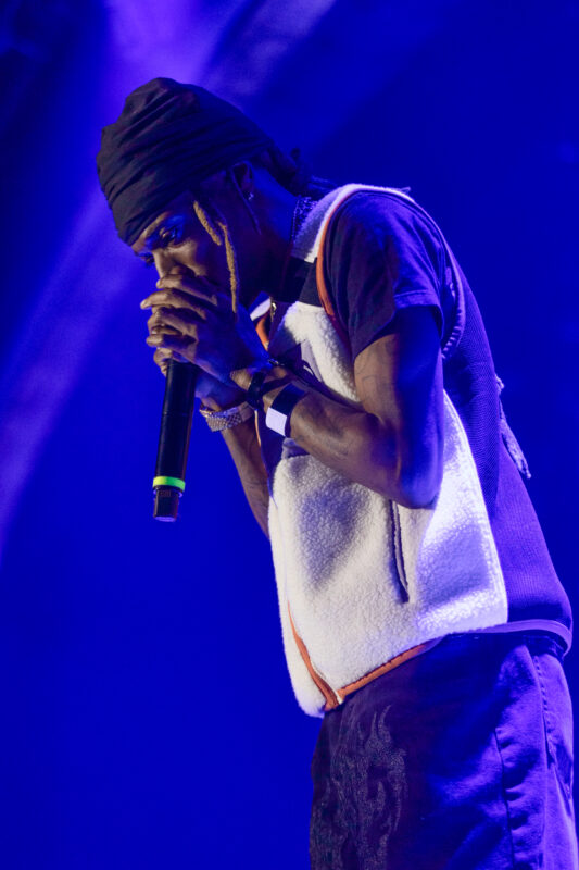 Offset’s distinctive personal style also left a lasting impression. Clad in a black leather vest, matching pants, a red and black glove, and adorned with black locs, he exuded confidence and swagger. Despite moments of anticipation as he executed high kicks, his poise and charm only heightened the performance’s allure.
