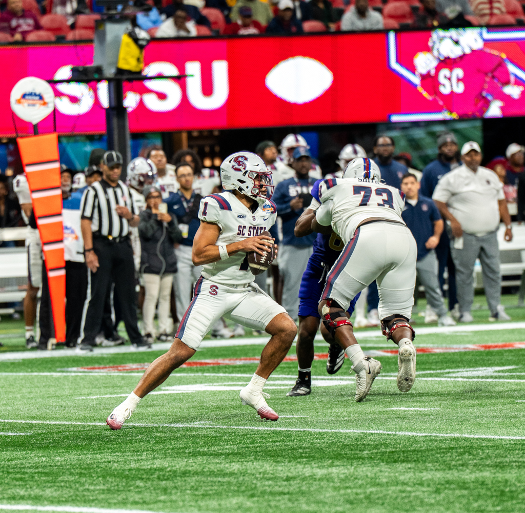 South Carolina State sealed a dramatic 40–38 victory over Prairie View A&M when Tyler Smith hauled in a pass and, according to officials, barely extended the football over the pylon on a decisive two-point conversion in the fourth overtime at Mercedes-Benz Stadium in Atlanta.