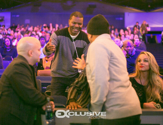 The fashionista was decked out in a denim coat, but it was Fabolous’ fashion that turned the most heads. The Brooklyn rapper and newest member of the Roc, channeled notorious drug dealer Frank Lucas in a chinchilla hat and coat as he performed “Lituation” and his remix to “Hot Ni**a” inside the ring.