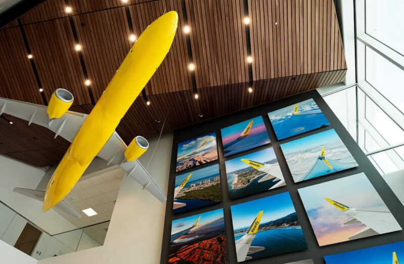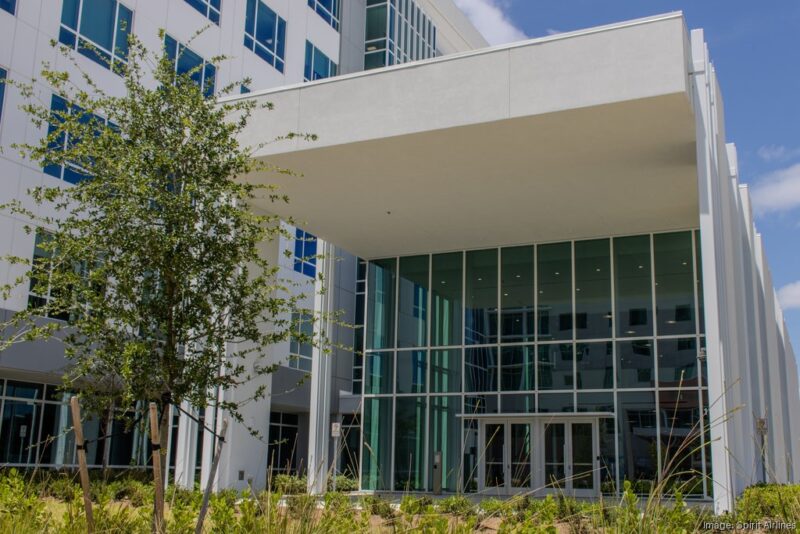 Spirit partnered with Florida-based architectural firm HuntonBrady, general contractor Brasfield & Gorrie, and project advisor Jones Lang LaSalle to design and build Spirit Central. The airline worked with Kimco Realty, the owner and principal developer of Dania Pointe, to secure the land.