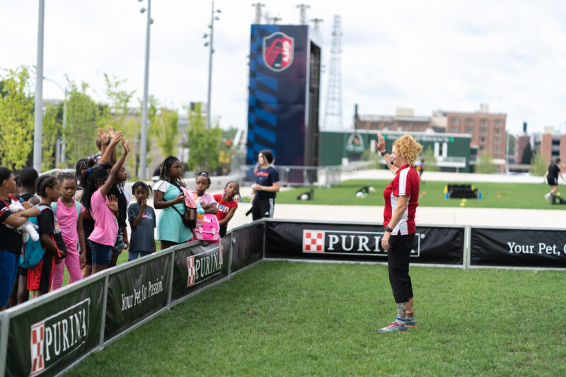 Approximately 30 kids from the Boys & Girls Clubs of St. Louis participated in a soccer and life skills summer camp last week, led by St. Louis CITY SC community coaches and presented by Purina. On Thursday, July 13, the campers practiced soccer skills with CITY2 players and coaches and enjoyed a special performance from the Purina Incredible Dog Challenge on Lou Fusz Plaza at CITYPARK.