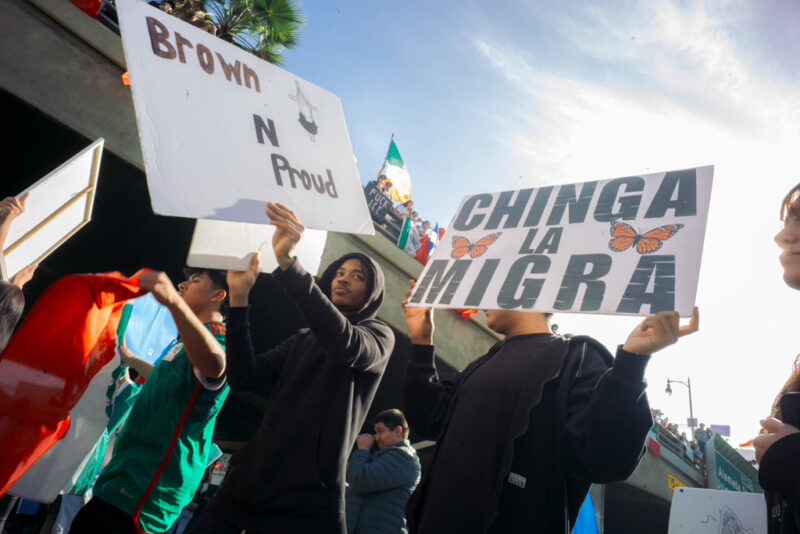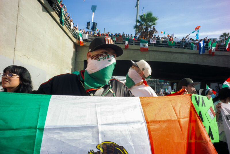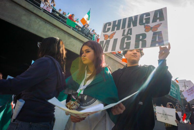 In Riverside, hundreds took to the streets to voice their opposition. Supporters honked their car horns and shouted messages of encouragement as demonstrators waved Mexican flags and displayed signs at the intersection of Magnolia Avenue and Tyler Street near the Galleria at Tyler.