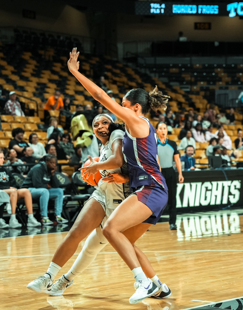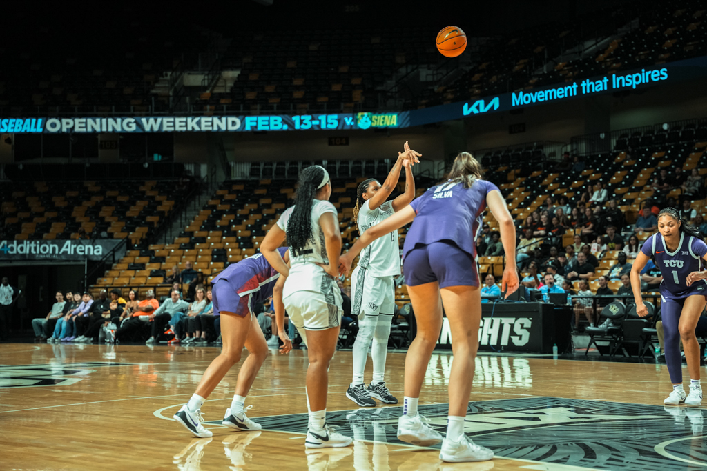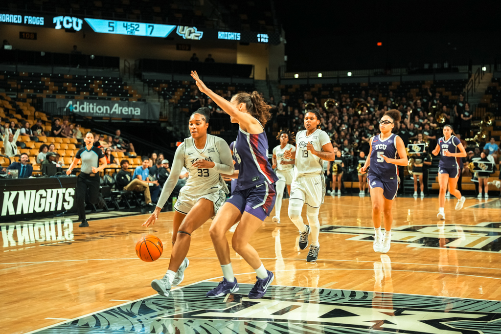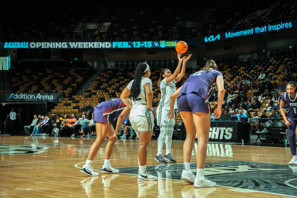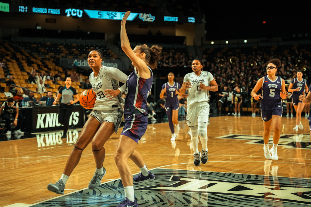 The Knights responded with their best stretch of the game in the third quarter, shooting 50 percent from the field while holding TCU scoreless from beyond the arc. UCF outscored the Horned Frogs by five in the frame, but the gap remained significant as the Knights entered the fourth quarter down 48–32.