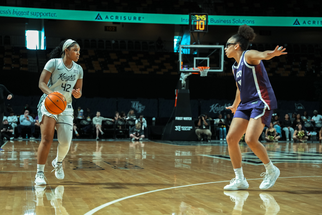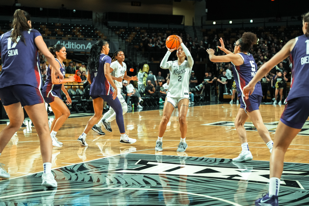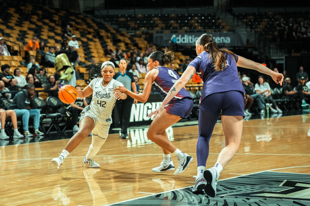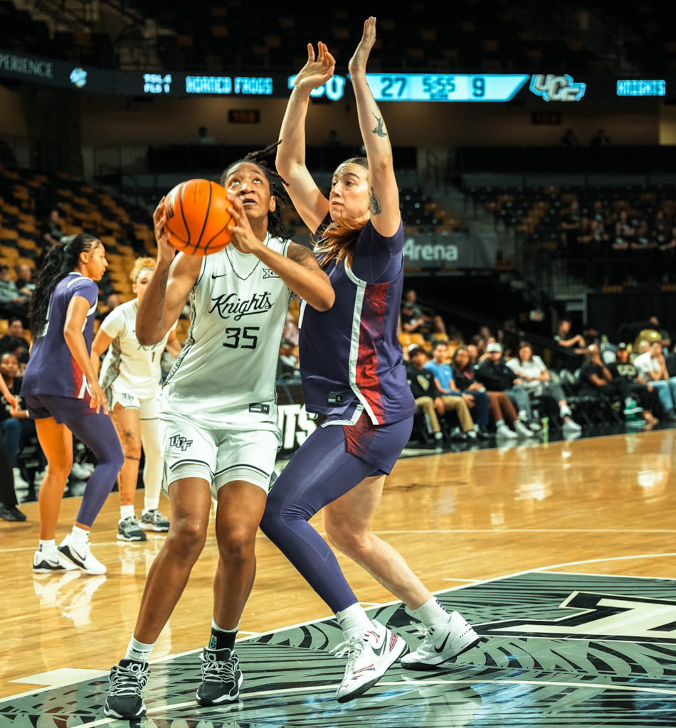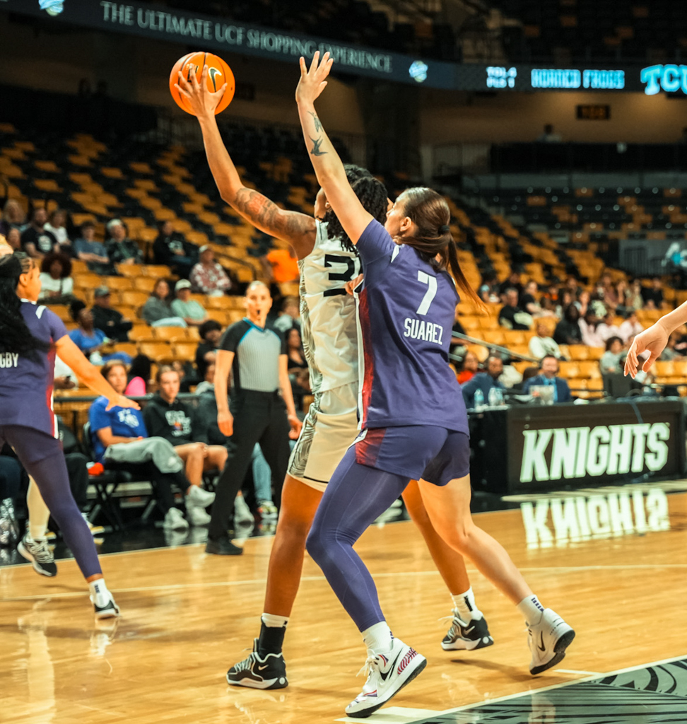The Knights responded with their best stretch of the game in the third quarter, shooting 50 percent from the field while holding TCU scoreless from beyond the arc. UCF outscored the Horned Frogs by five in the frame, but the gap remained significant as the Knights entered the fourth quarter down 48–32.